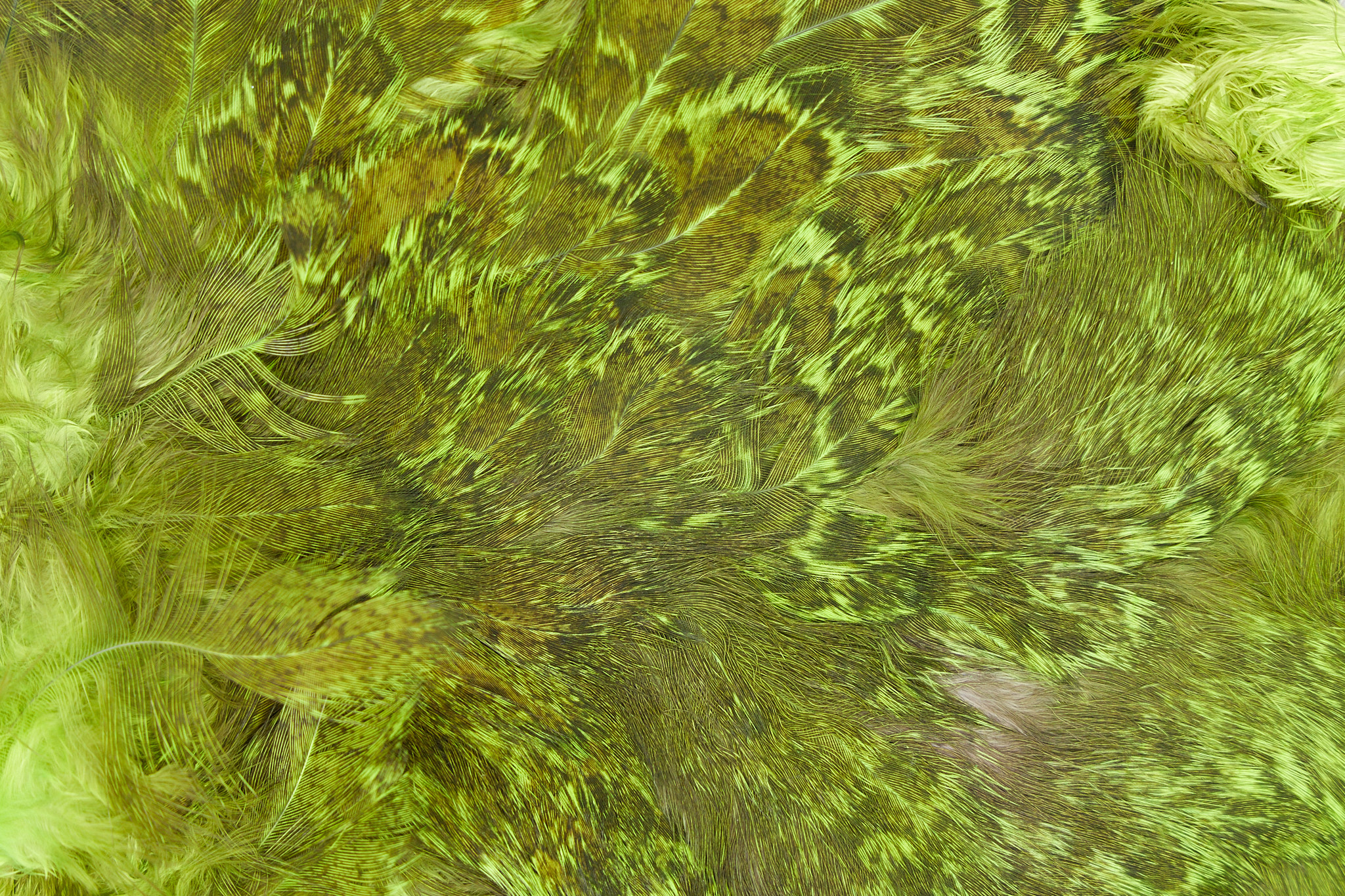 Green Chartreuse colored Whiting Farms Coq De Leon Hackle for tying dry flies.