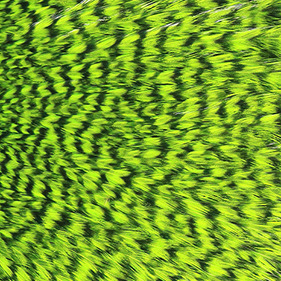 Available Grizzly Fluorescent Green Chartreuse color rooster hackle from all of the product lines.