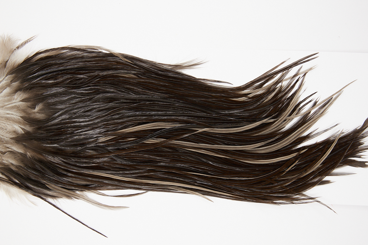 10150 is a Beaverkill Rooster Saddle of Black color that ties predominately size 10-12. The image shown is an actual photo of this dry fly saddle. This is NEW UNUSED HACKLE.