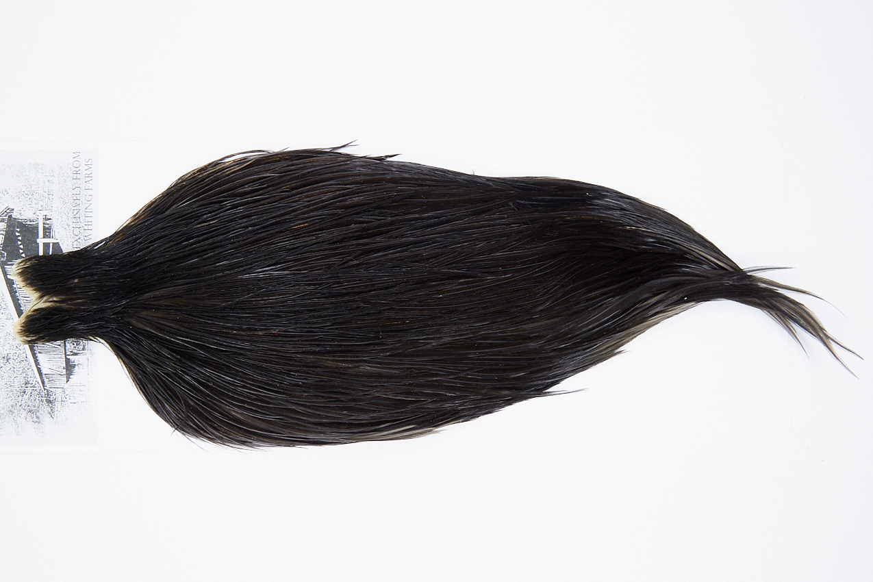 10257 is a Beaverkill Rooster Cape of Black color that ties predominately size 8-18. The image shown is an actual photo of this dry fly cape. This is NEW UNUSED HACKLE.