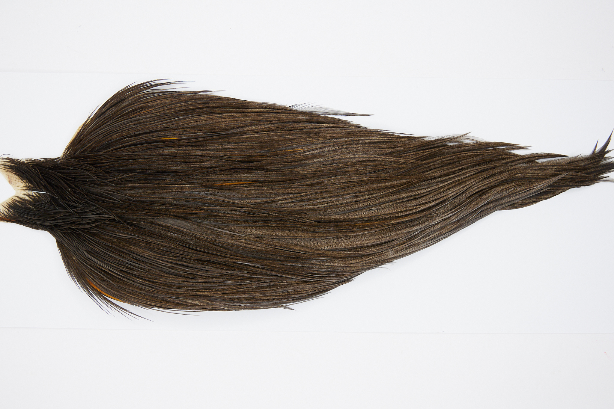 10299 is a JimsFlyCo Grade 2 Rooster Cape of Dark Dun color that ties predominately size 10-22. The image shown is an actual photo of this dry fly cape. This is NEW UNUSED HACKLE.