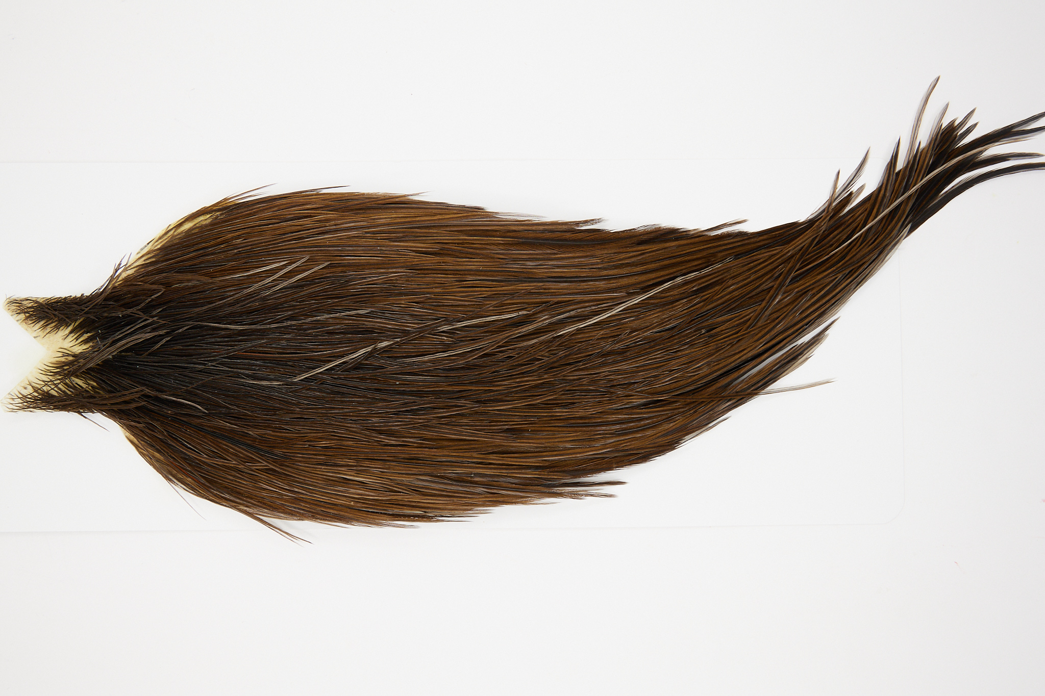 10311 is a JimsFlyCo Grade 2 Rooster Cape of Brown Dun color that ties predominately size 10-20. The image shown is an actual photo of this dry fly cape. This is NEW UNUSED HACKLE.