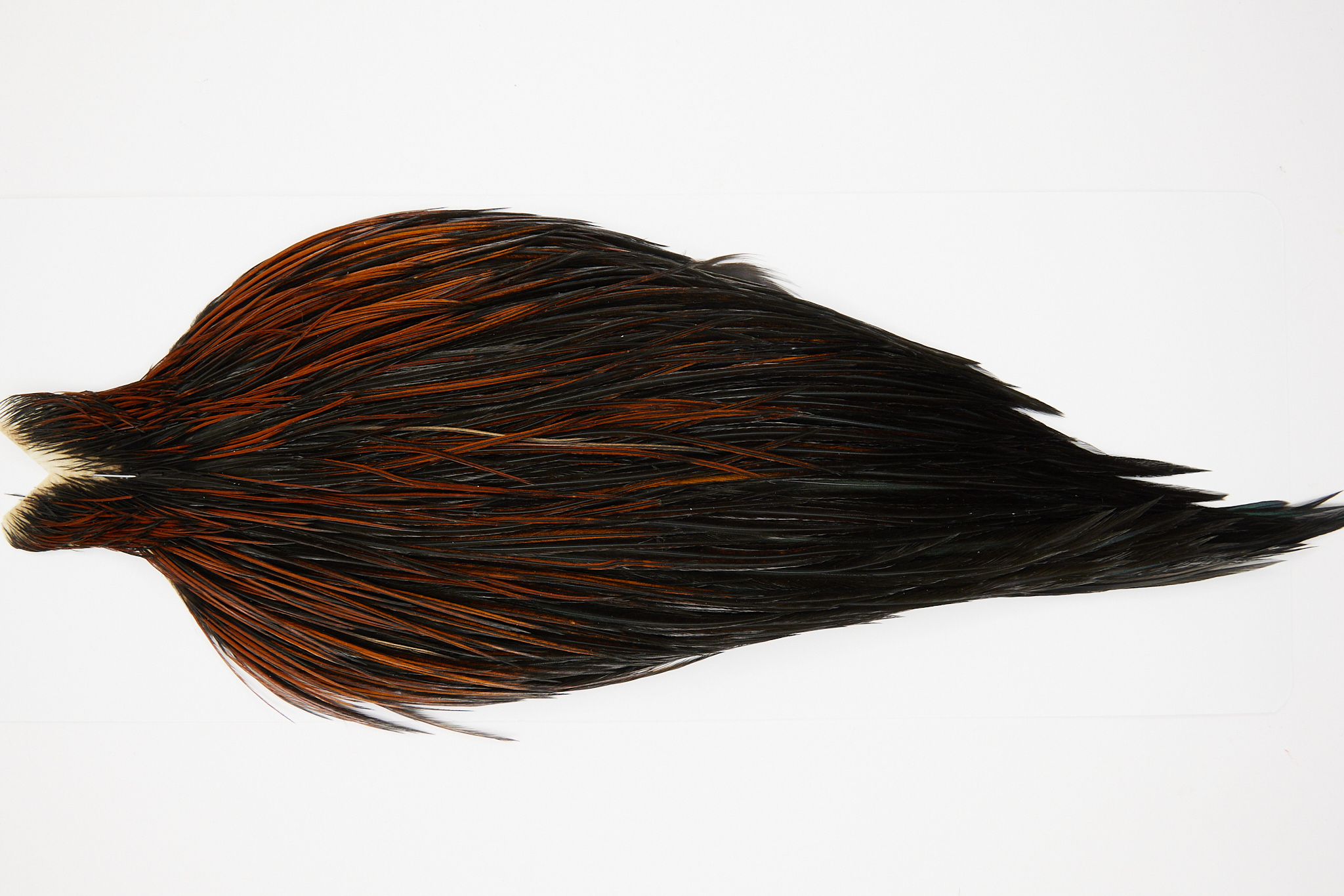 10321 is a JimsFlyCo Grade 2 Rooster Cape of Variant color that ties predominately size 10-22. The image shown is an actual photo of this dry fly cape. This is NEW UNUSED HACKLE.