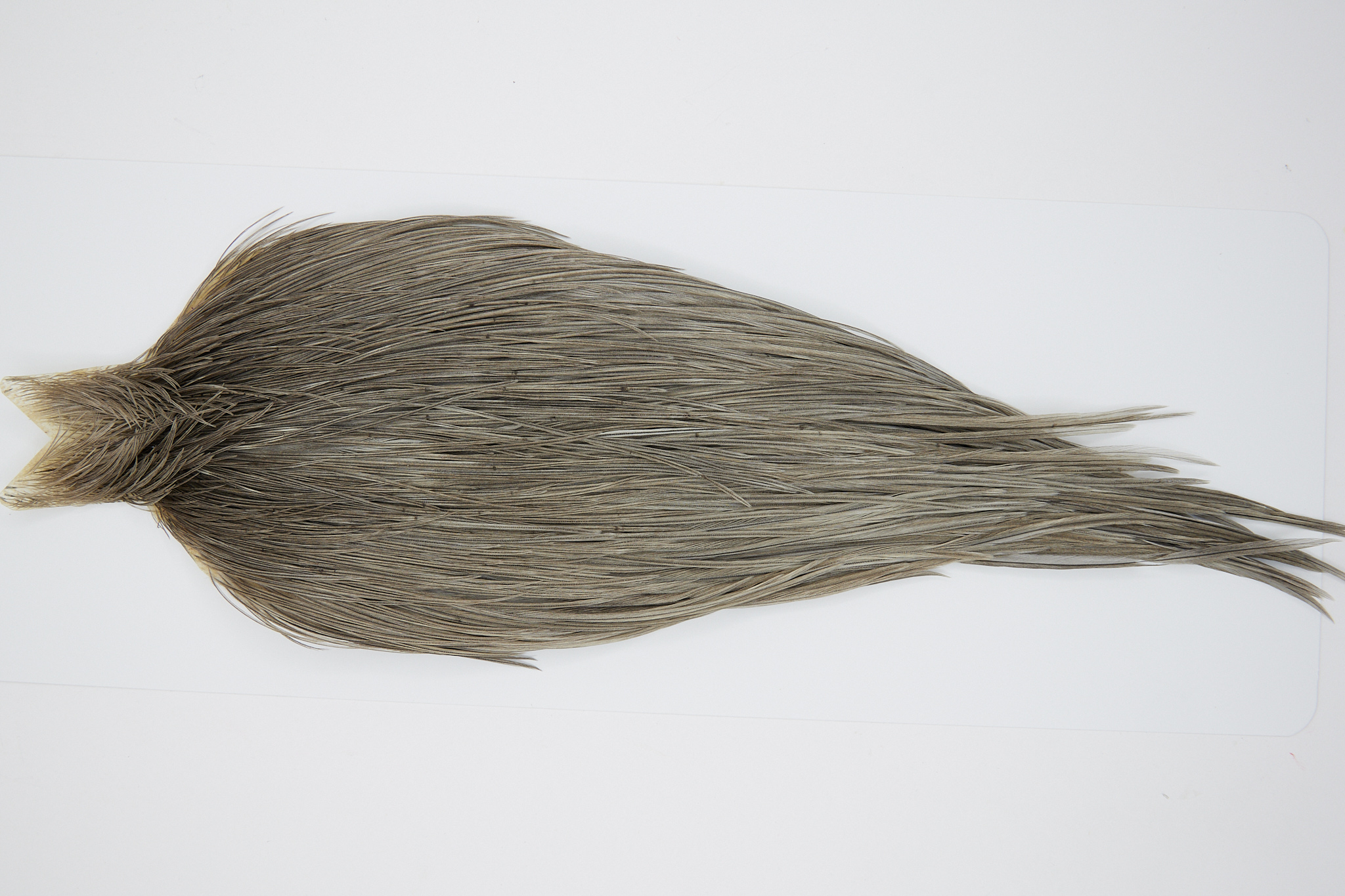 10346 is a JimsFlyCo Grade 2 Rooster Cape of Medium Dun color that ties predominately size 10-18. The image shown is an actual photo of this dry fly cape. This is NEW UNUSED HACKLE.