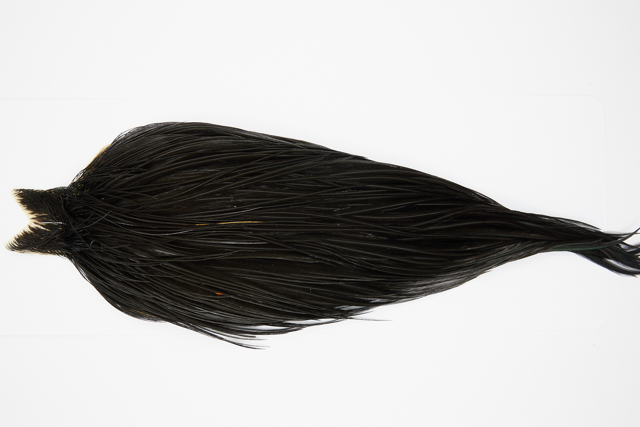 10353 is a JimsFlyCo Grade 2 Rooster Cape of Black color that ties predominately size 10-20. The image shown is an actual photo of this dry fly cape. This is NEW UNUSED HACKLE.