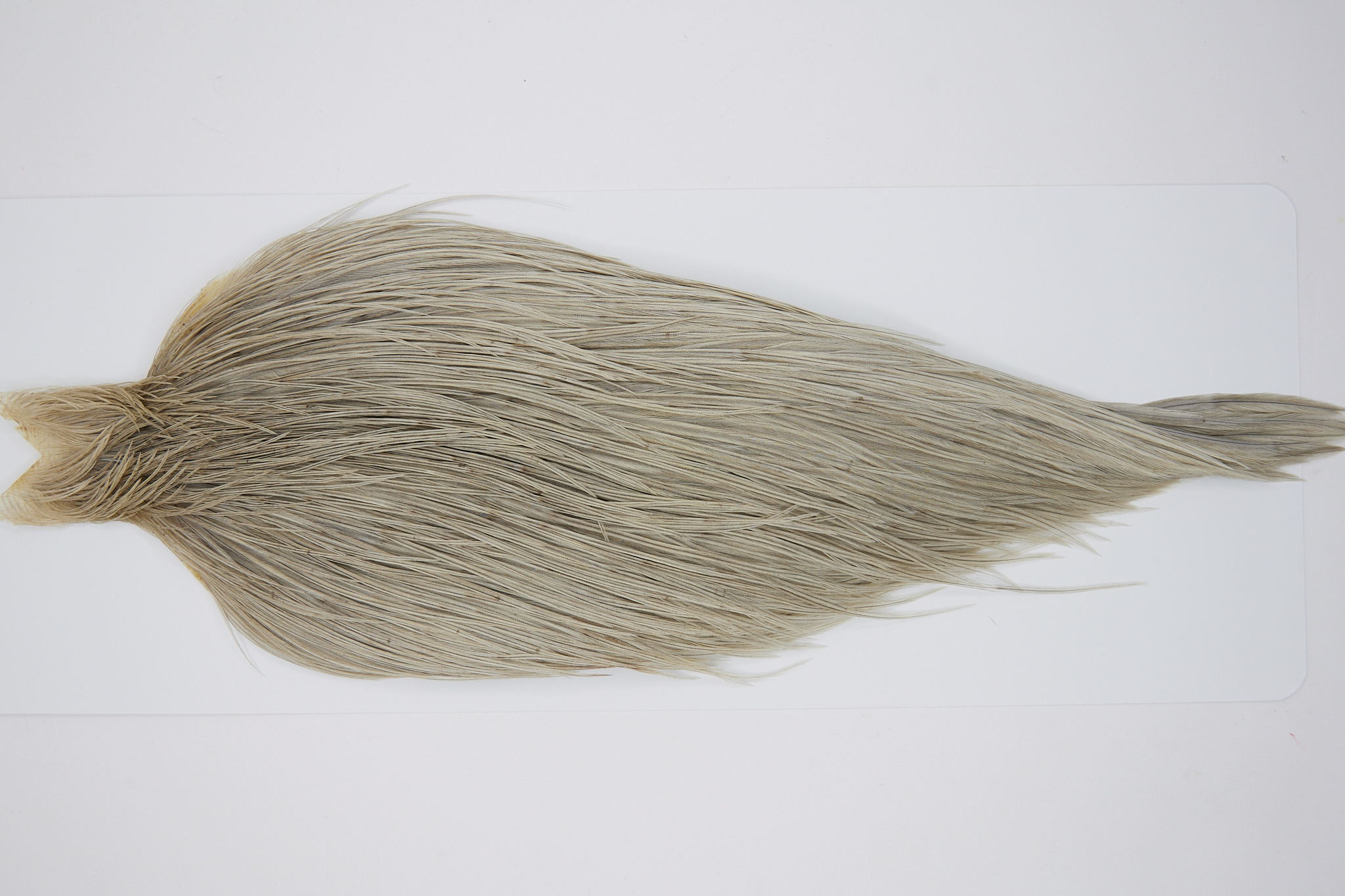 10369 is a JimsFlyCo Grade 2 Rooster Saddle of Light Dun color that ties predominately size 10-18. The image shown is an actual photo of this dry fly saddle. This is NEW UNUSED HACKLE.