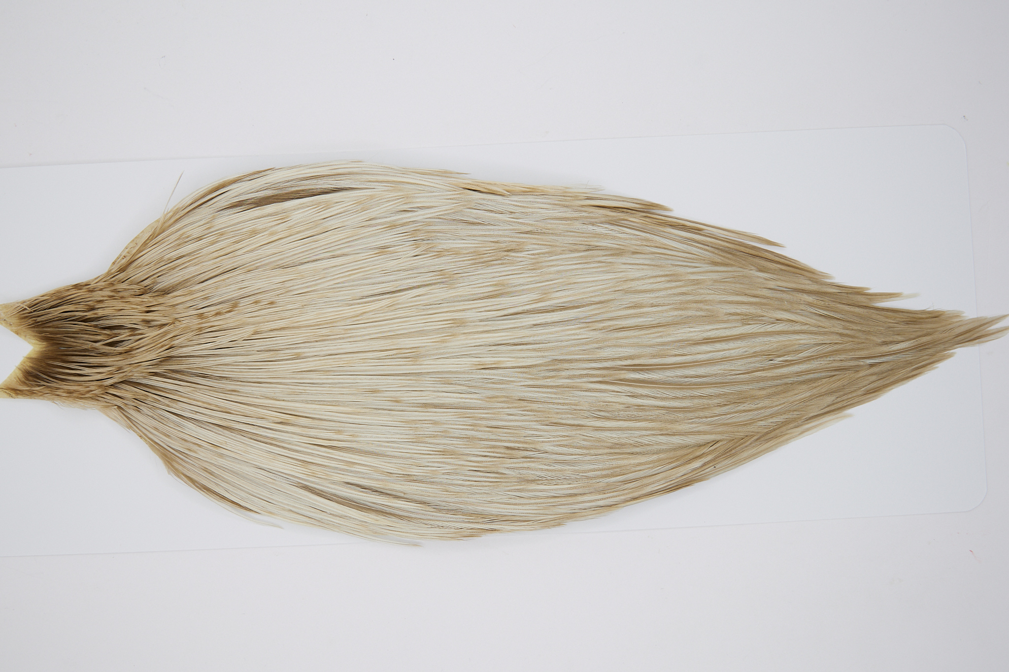 10371 is a JimsFlyCo Grade 2 Rooster Saddle of Light Dun color that ties predominately size 8-20. The image shown is an actual photo of this dry fly saddle. This is NEW UNUSED HACKLE.