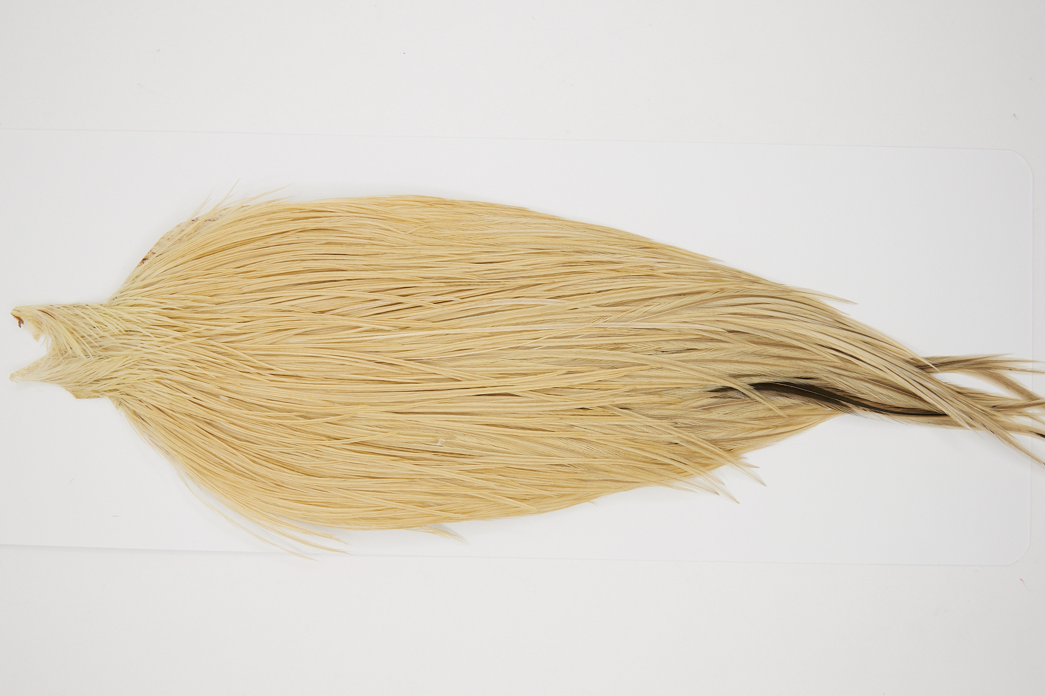 10379 is a JimsFlyCo Grade 2 Rooster Cape of Ginger Dun color that ties predominately size 10-20. The image shown is an actual photo of this dry fly cape. This is NEW UNUSED HACKLE.
