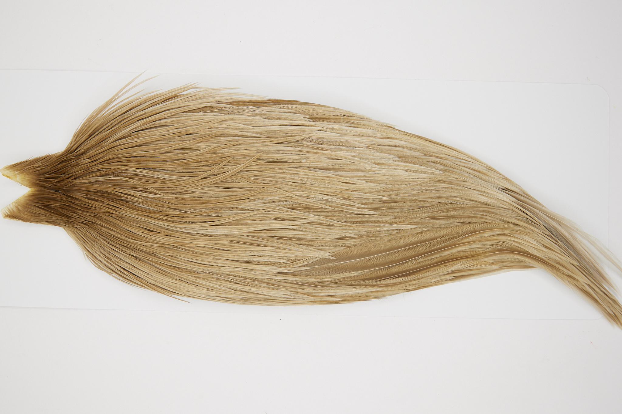 10416 is a JimsFlyCo Grade 1 Rooster Cape of Medium Dun color that ties predominately size 10-18. The image shown is an actual photo of this dry fly cape. This is NEW UNUSED HACKLE.