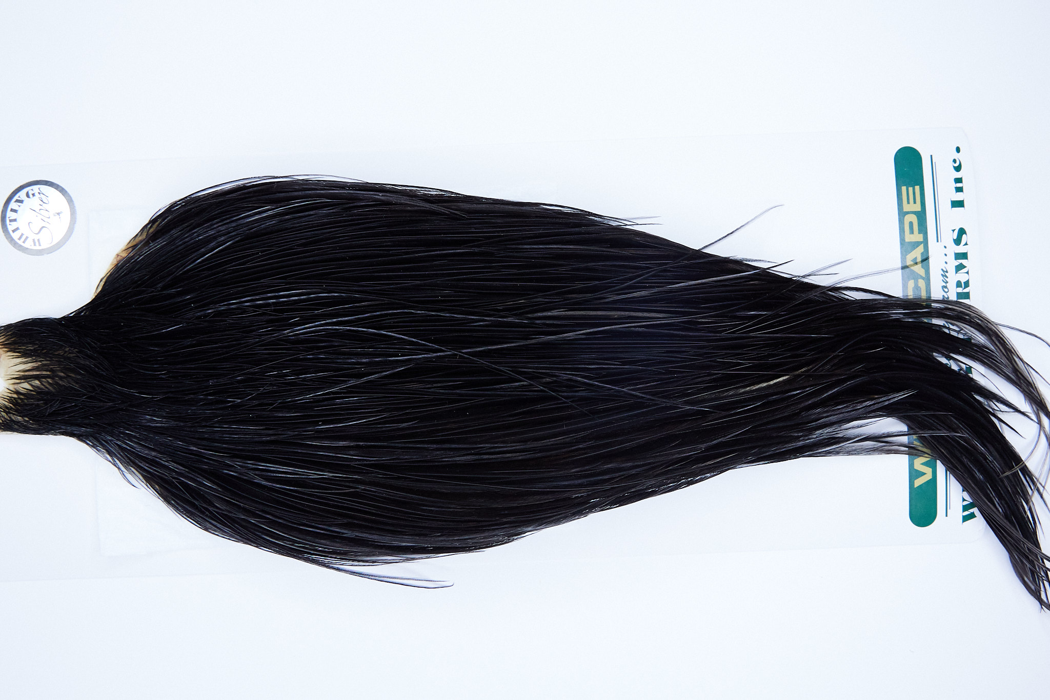1042 Hebert Dry Fly Hackle, Silver Grade Rooster Cape Black Ties Sizes 12-22