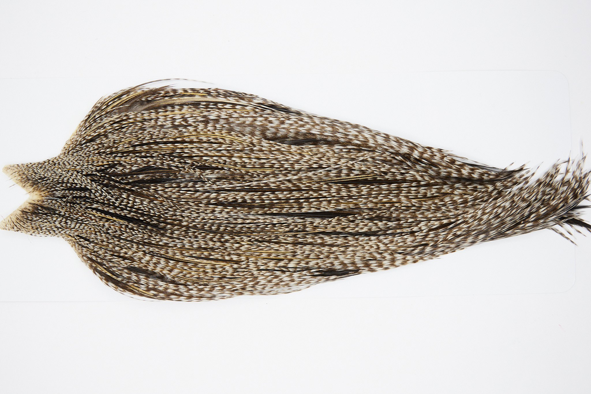 10427 is a JimsFlyCo Grade 1 Rooster Cape of Grizzly Dun Variant color that ties predominately size 10-22. The image shown is an actual photo of this dry fly cape. This is NEW UNUSED HACKLE.