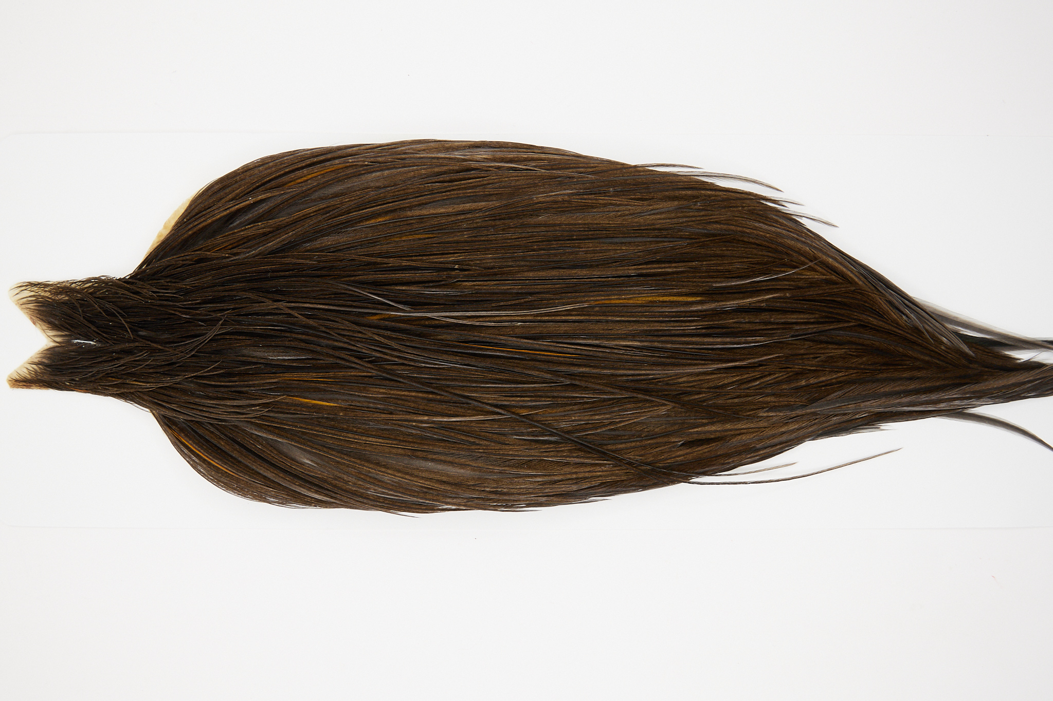 10433is a JimsFlyCo Grade 1 Rooster Cape of Dark Dun color that ties predominately size 12-22. The image shown is an actual photo of this dry fly cape. This is NEW UNUSED HACKLE.