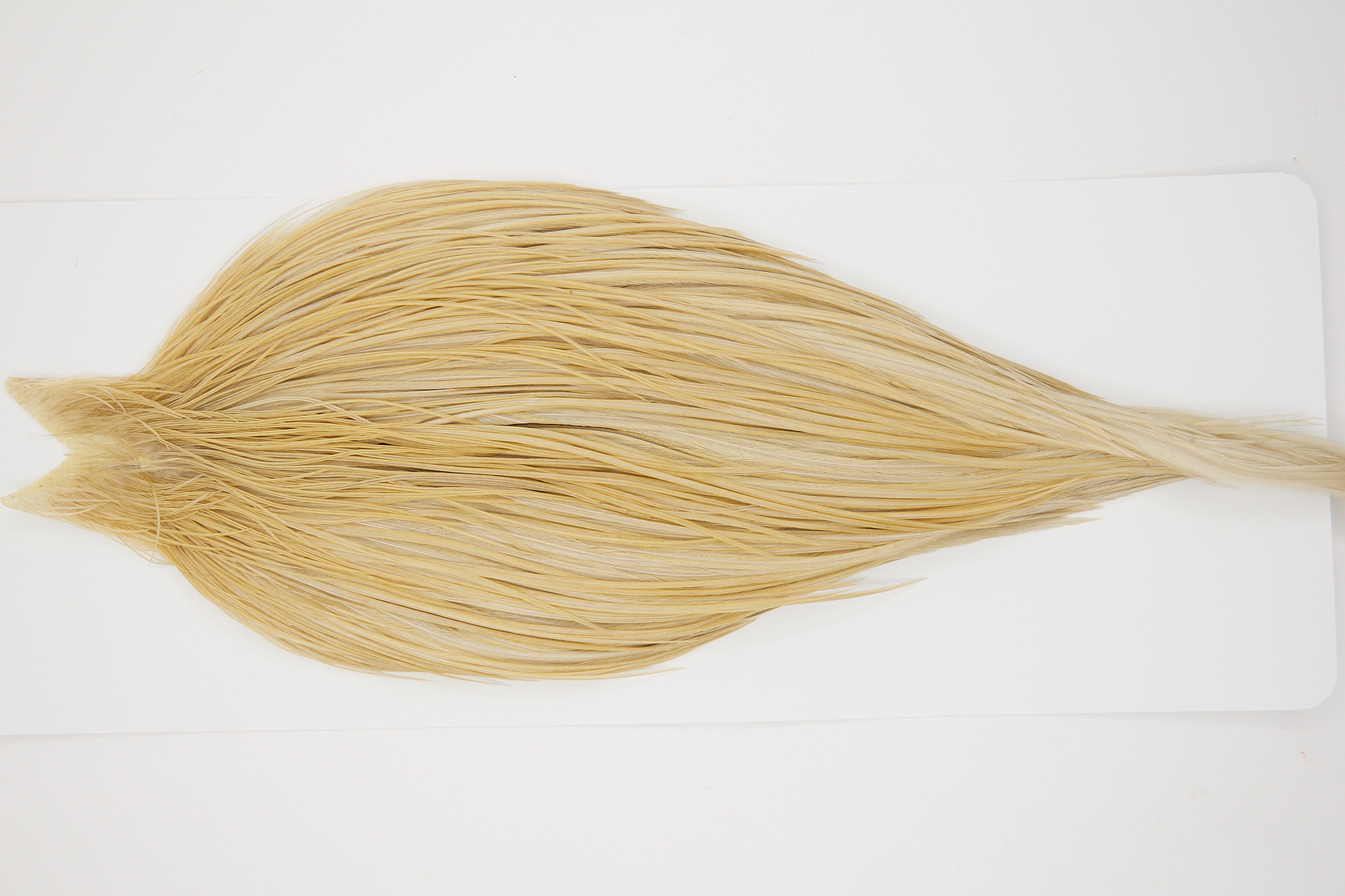 10438is a JimsFlyCo Grade 1 Rooster Cape of Ginger Dun color that ties predominately size 10-22. The image shown is an actual photo of this dry fly cape. This is NEW UNUSED HACKLE.