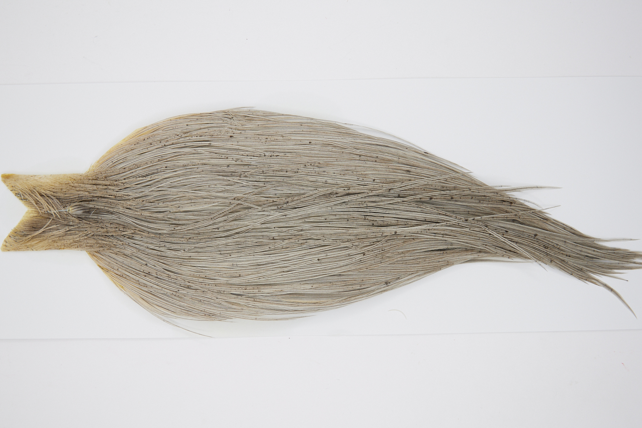 10442is a JimsFlyCo Grade 1 Rooster Cape of Light Dun color that ties predominately size 10-22. The image shown is an actual photo of this dry fly cape. This is NEW UNUSED HACKLE.