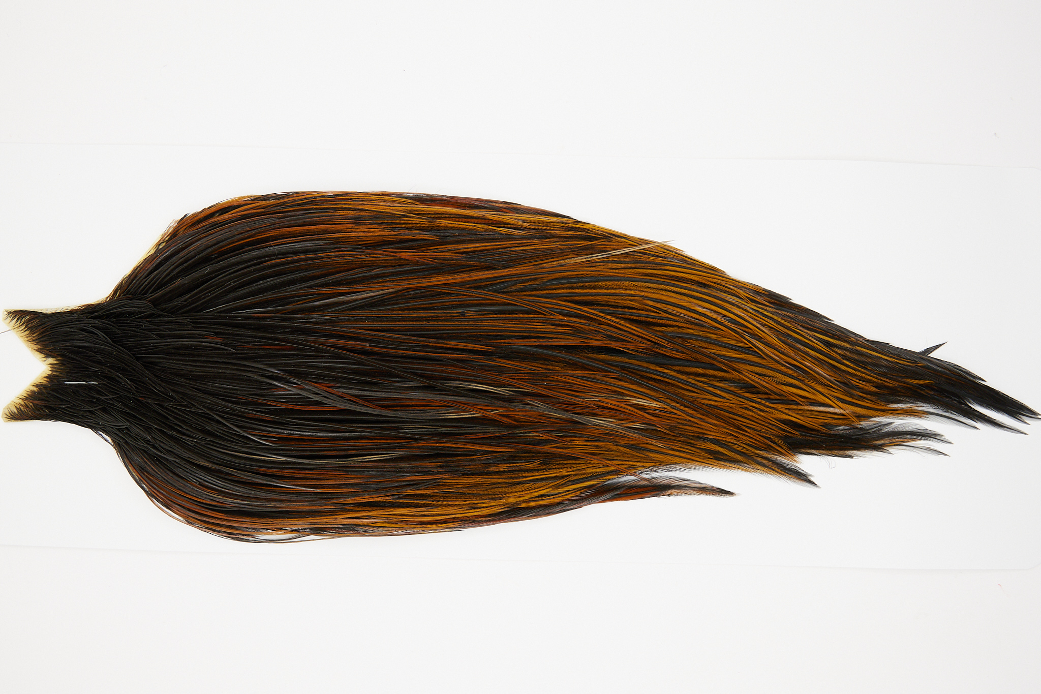 10454 is a JimsFlyCo Grade 1 Rooster Cape of Variant color that ties predominately size 10-20. The image shown is an actual photo of this dry fly cape. This is NEW UNUSED HACKLE.