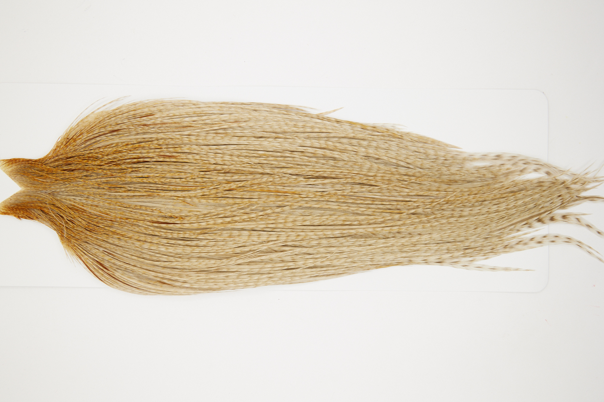 10489 is a JimsFlyCo Rhodium Rooster Cape of Variant color that ties predominately size 10-22. The image shown is an actual photo of this dry fly cape. This is NEW UNUSED HACKLE.
