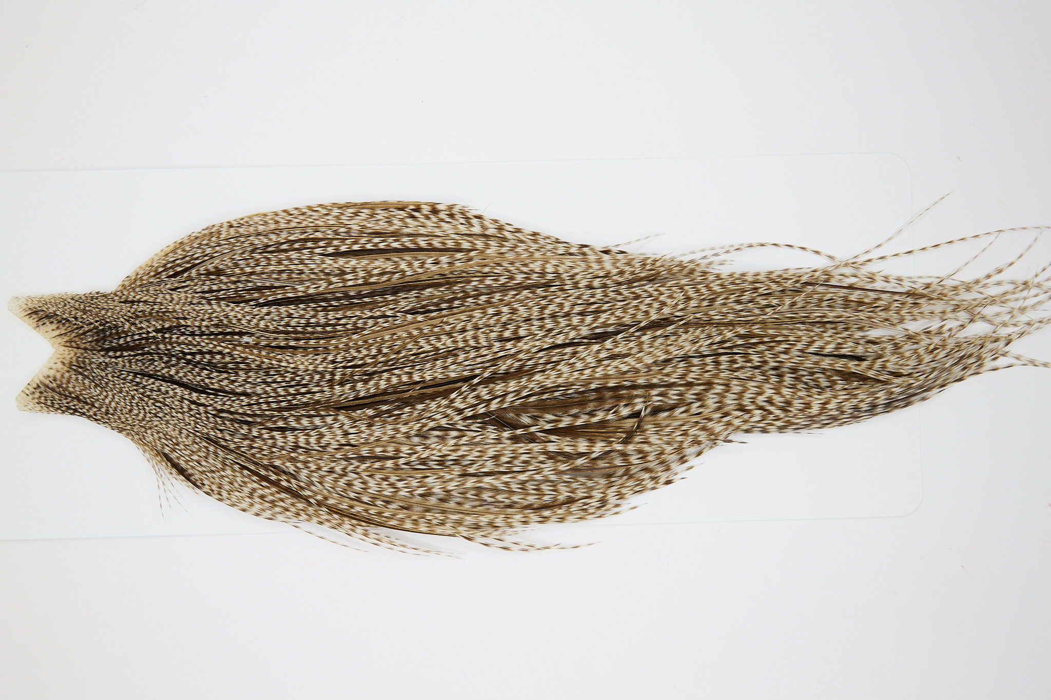 10507 is a JimsFlyCo Rhodium Rooster Cape of Grizzly Dun Variant color that ties predominately size 10-22. The image shown is an actual photo of this dry fly cape. This is NEW UNUSED HACKLE.