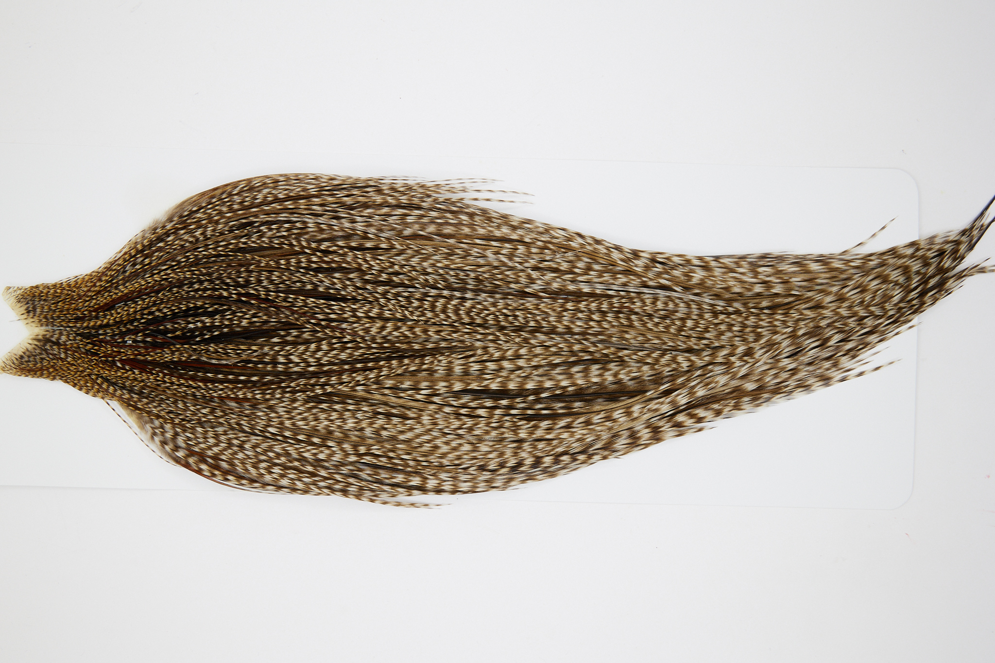 10510 is a JimsFlyCo Rhodium Rooster Cape of Grizzly Dun Variant color that ties predominately size 8-24. The image shown is an actual photo of this dry fly cape. This is NEW UNUSED HACKLE.