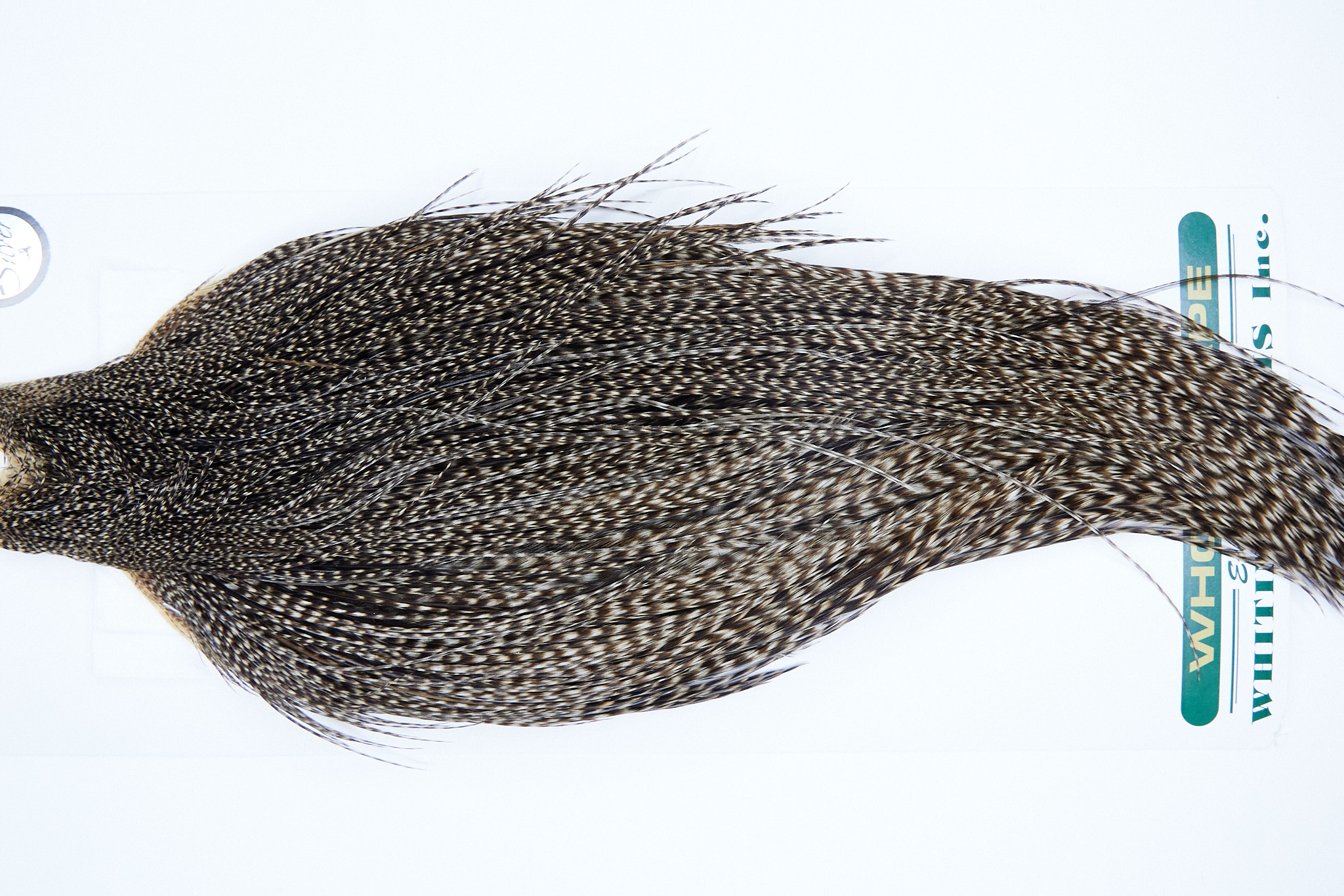 1052 Heber Miner Silver Grade Rooster Cape of a Grizzly Variant color. This dry fly hackle ties predominately sizes 10-22. The photo shown is an actual photo of this hackle.