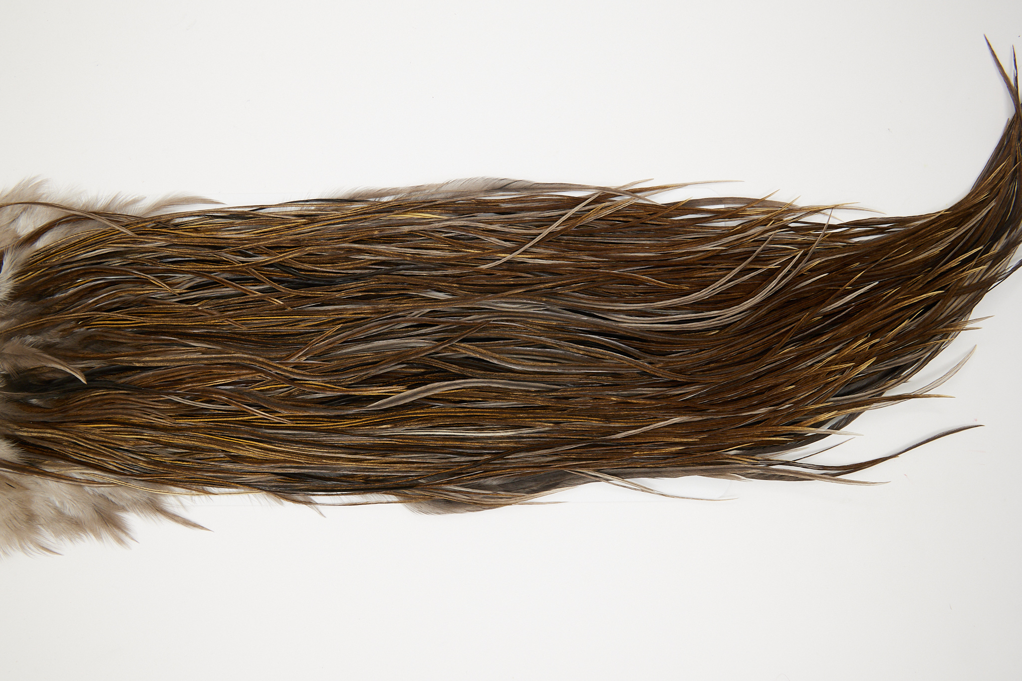 10644 is a JimsFlyCo Rhodium Rooster Saddle of Dark Dun color that ties predominately size 12-14. The image shown is an actual photo of this dry fly saddle. This is NEW UNUSED HACKLE.