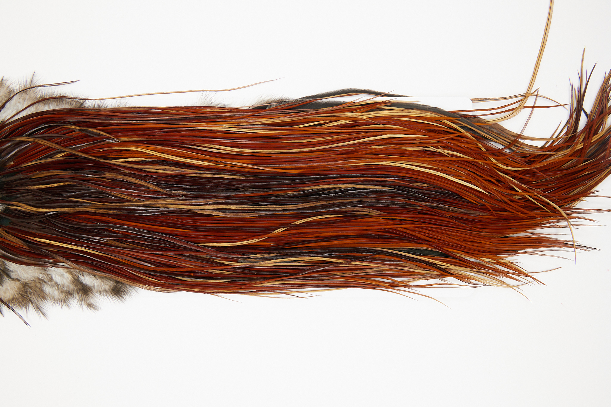 10654 is a Whiting Silver Grade Rooster Saddle of Brown color that ties predominately size 14-16. The image shown is an actual photo of this dry fly saddle. This is NEW UNUSED HACKLE.