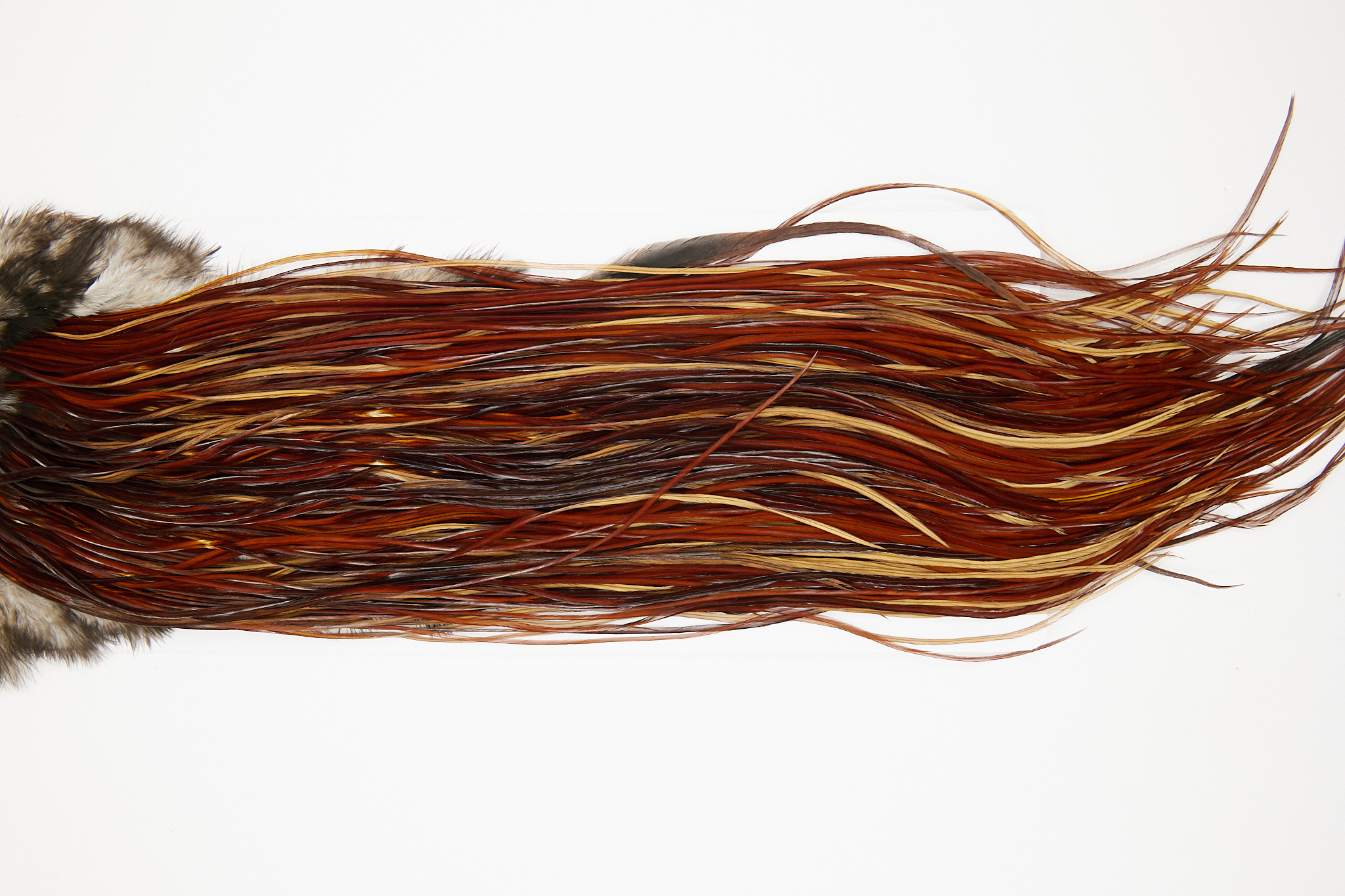 10655 is a Whiting Silver Grade Rooster Saddle of Brown color that ties predominately size 14-16. The image shown is an actual photo of this dry fly saddle. This is NEW UNUSED HACKLE.