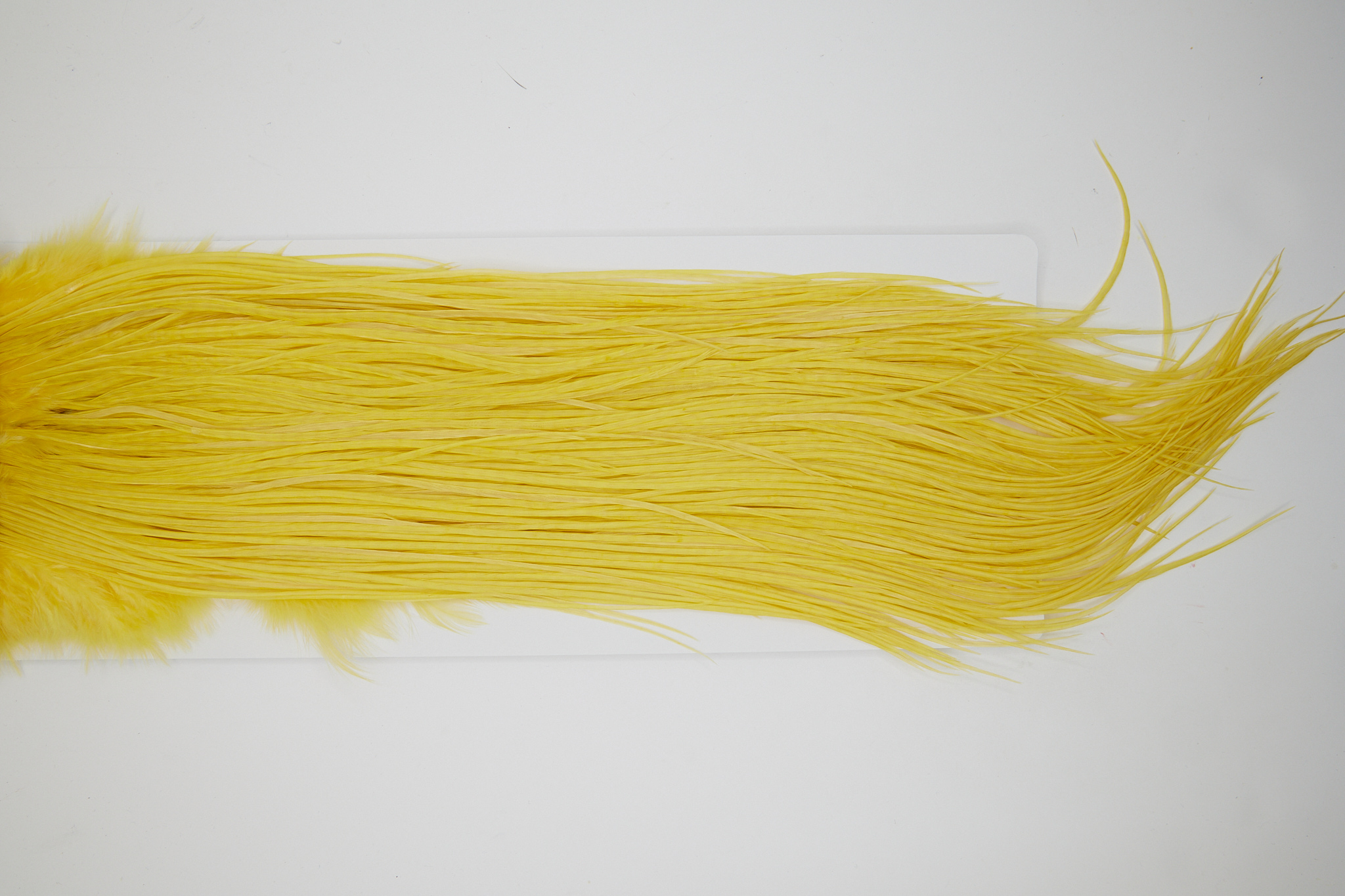 10704 is a Whiting Silver Grade Rooster Saddle of Golden Straw color that ties predominately size 14-18. The image shown is an actual photo of this dry fly saddle. This is NEW UNUSED HACKLE.