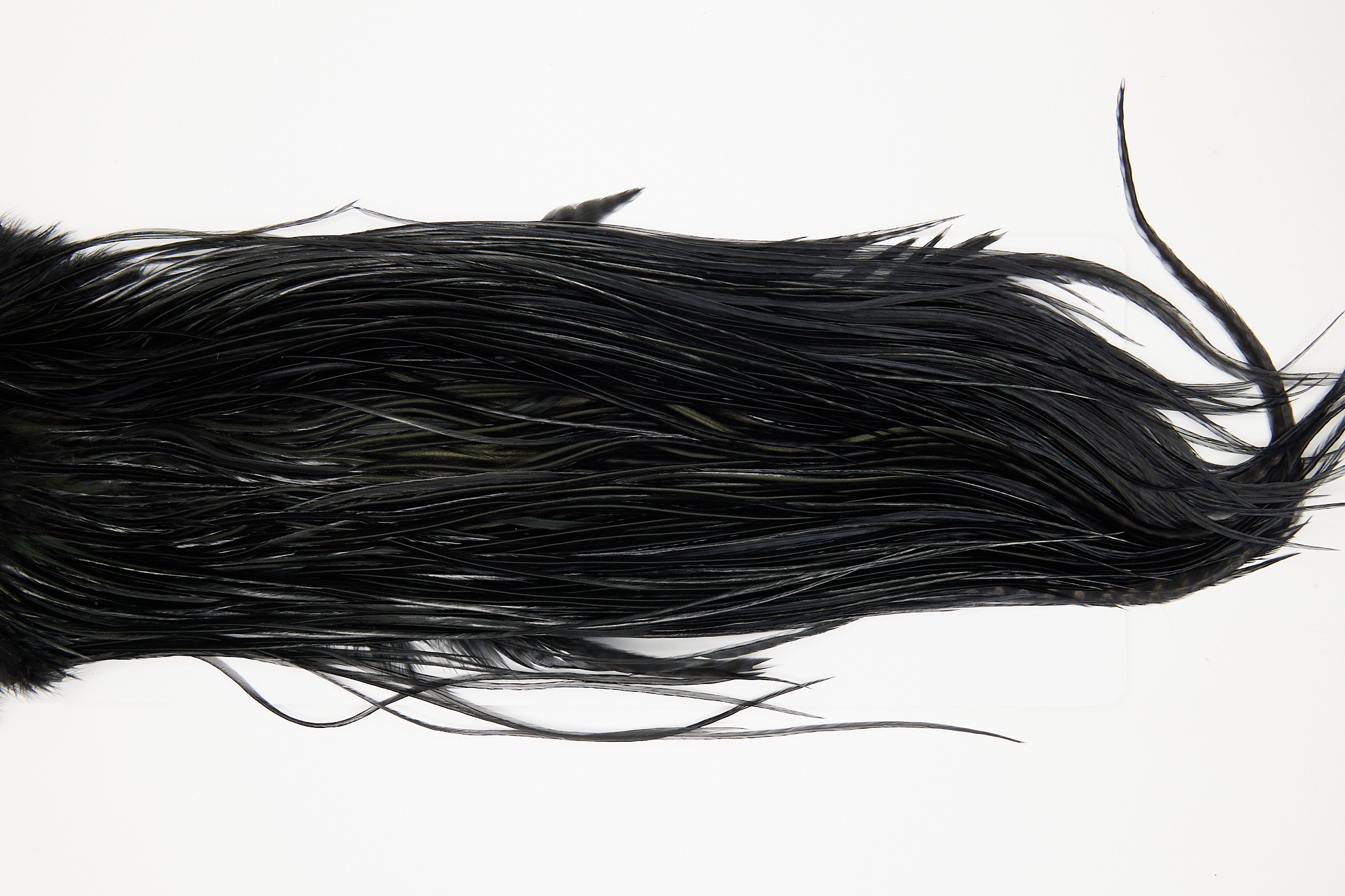 10743 is a Whiting Bronze Grade Rooster Saddle of Black color that ties predominately size 14. The image shown is an actual photo of this dry fly saddle. This is NEW UNUSED HACKLE.