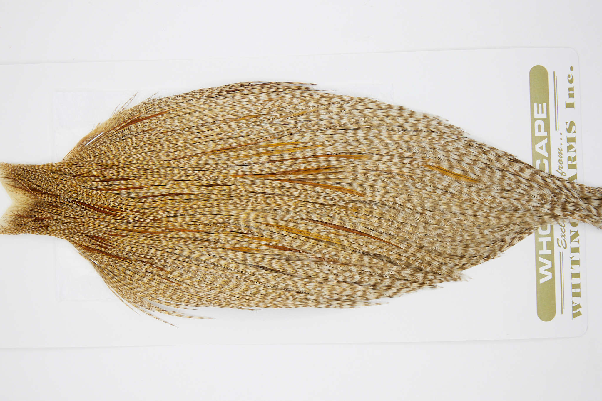 10796 is a Heritage Grade 2 Rooster Cape of Dun Cree color that ties predominately size 10-20. The image shown is an actual photo of this dry fly cape. This is NEW UNUSED HACKLE.