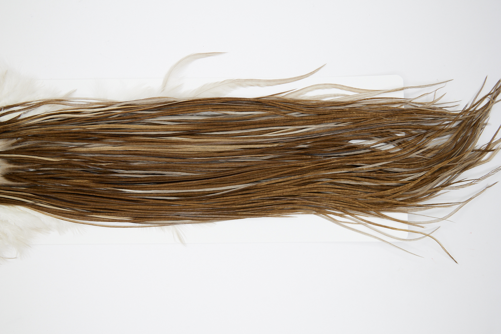 10841 is a Heritage Grade 1 Rooster Saddle of Heritage Dun color that ties predominately size 14-16. The image shown is an actual photo of this dry fly saddle. This is NEW UNUSED HACKLE.