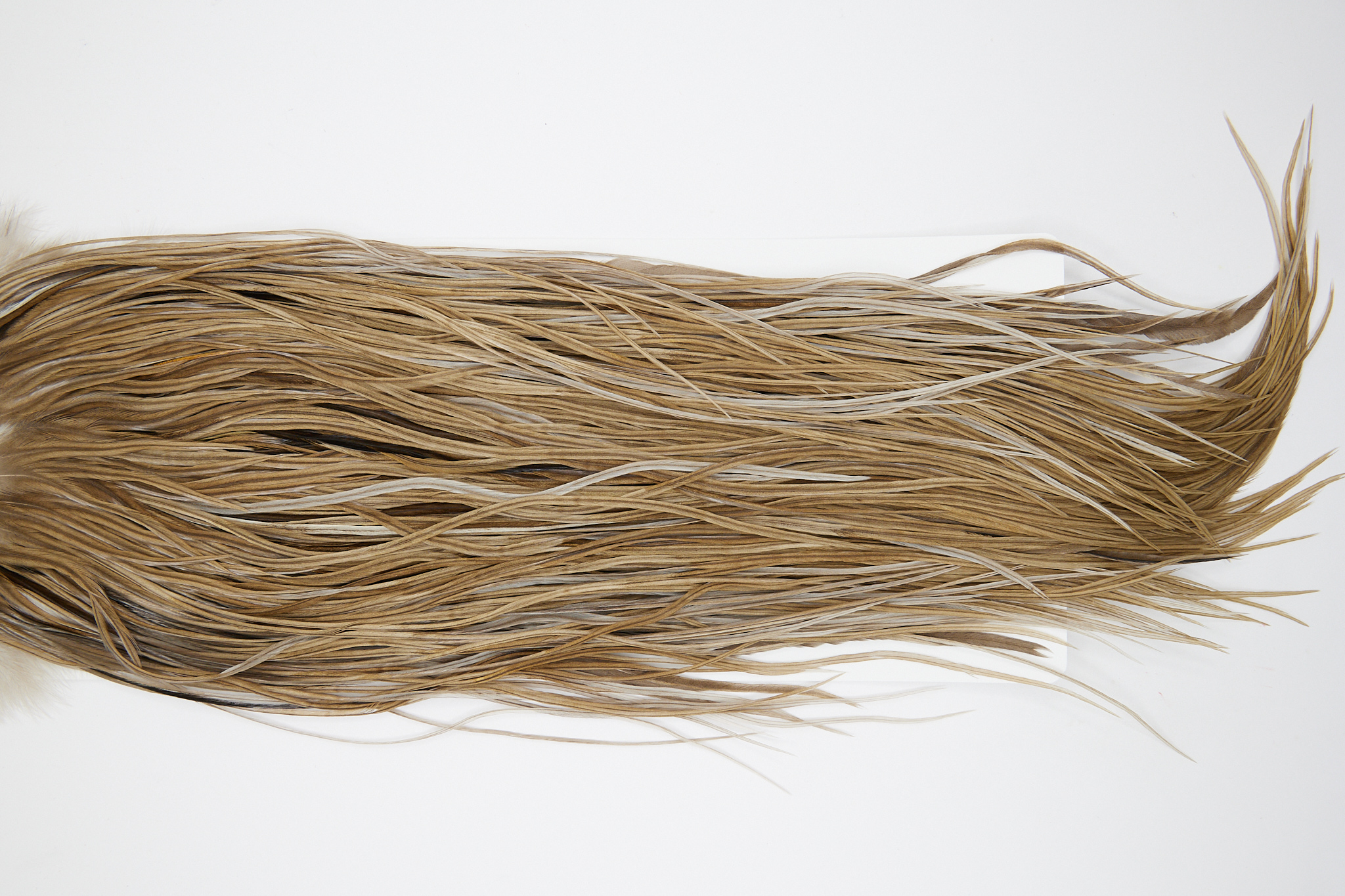 10842 is a Heritage Grade 1 Rooster Saddle of Heritage Dun color that ties predominately size 12-16. The image shown is an actual photo of this dry fly saddle. This is NEW UNUSED HACKLE.