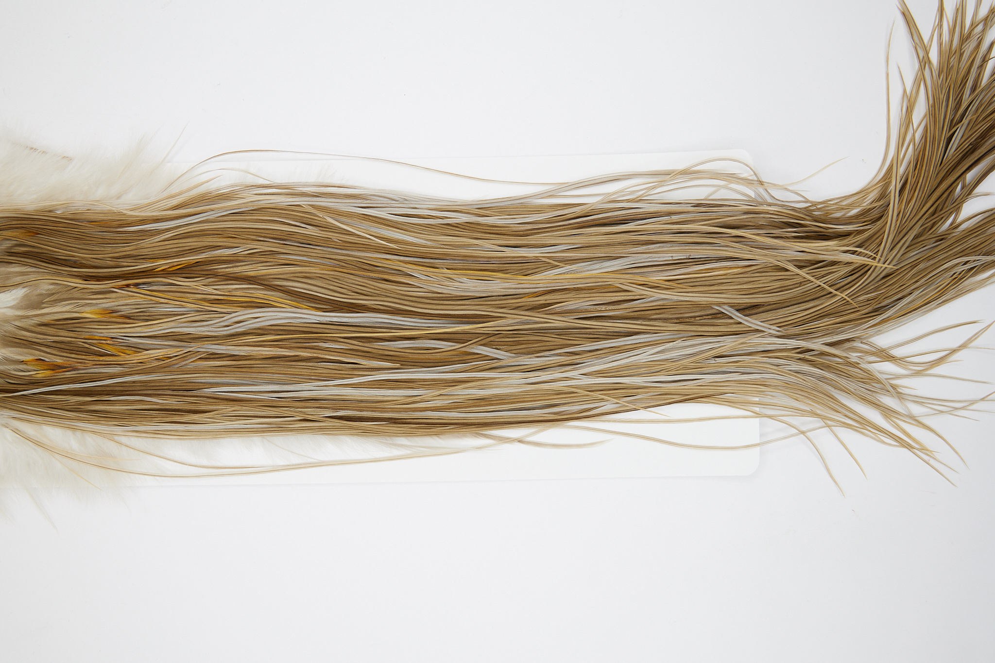 10846 is a Heritage Grade 1 Rooster Saddle of Heritage Dun color that ties predominately size 12-18. The image shown is an actual photo of this dry fly saddle. This is NEW UNUSED HACKLE.