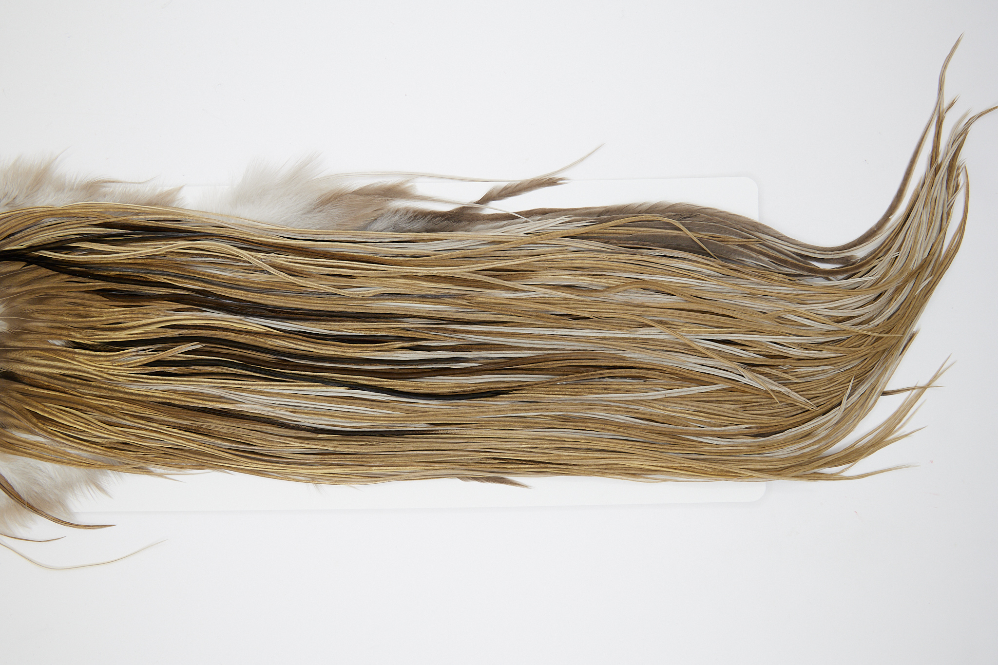 10847 is a Heritage Grade 1 Rooster Saddle of Heritage Dun color that ties predominately size 12-14. The image shown is an actual photo of this dry fly saddle. This is NEW UNUSED HACKLE.