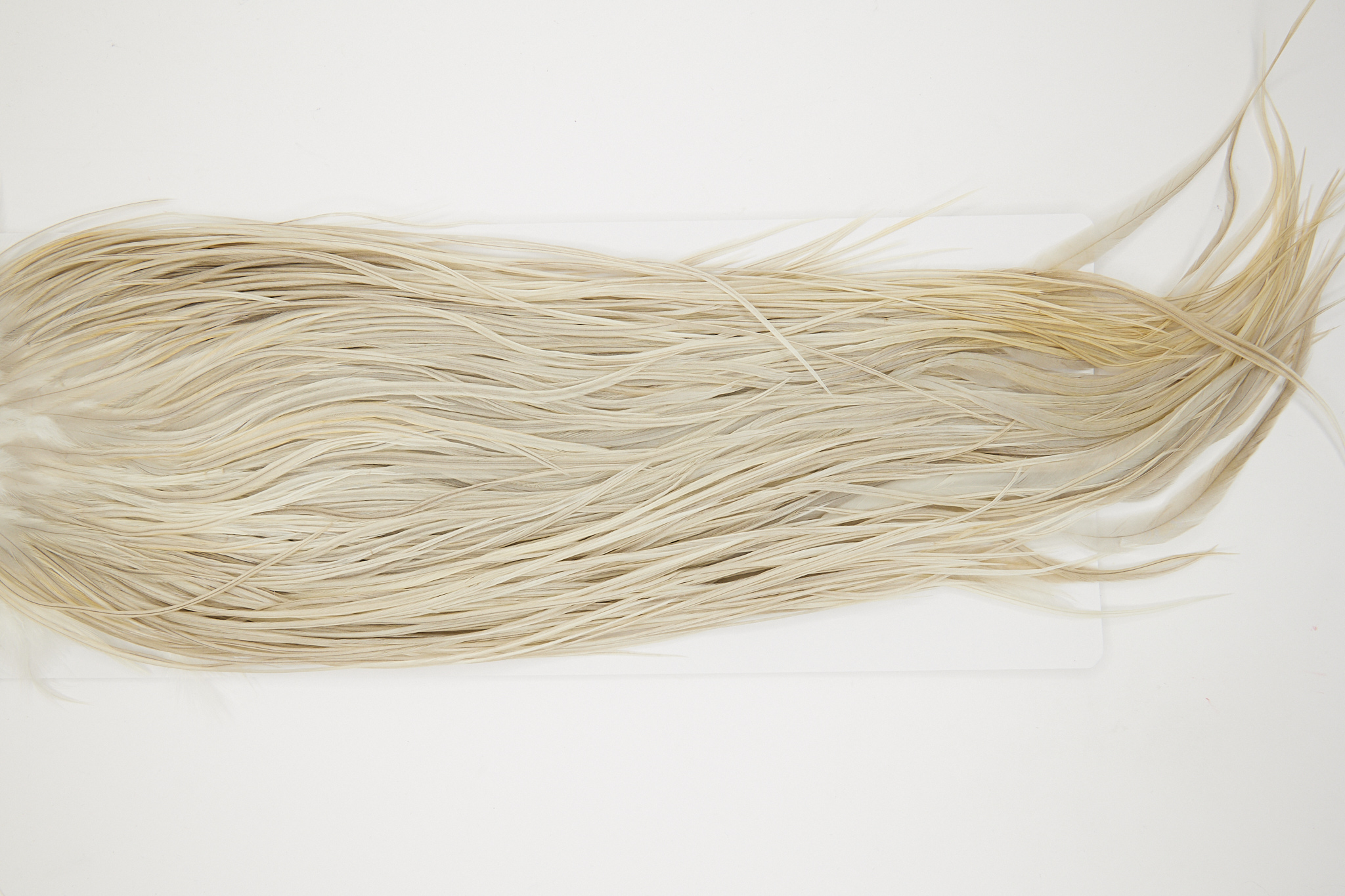 10869 is a Hebert Minor Bronze Grade Rooster Saddle of Light Grey Dun color that ties predominately size 12-14. The image shown is an actual photo of this dry fly saddle. This is NEW UNUSED HACKLE.