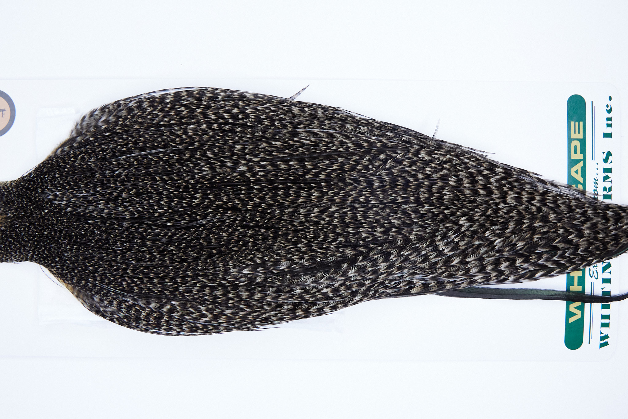 1088 Heber Miner Bronze Grade Rooster Cape of a Grizzly Variant color. This dry fly hackle ties predominately sizes 10-22. The photos shown are the actual photos of this dry fly Rooster Cape.