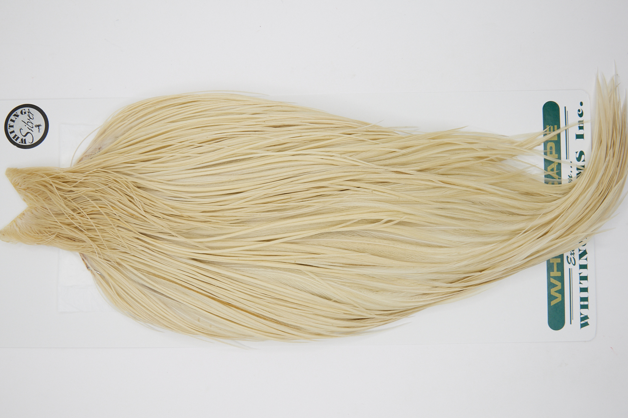 10881 is a Hebert Minor Silver Grade Rooster Cape of Cream color that ties predominately size 8-24. The image shown is an actual photo of this dry fly cape. This is NEW UNUSED HACKLE.