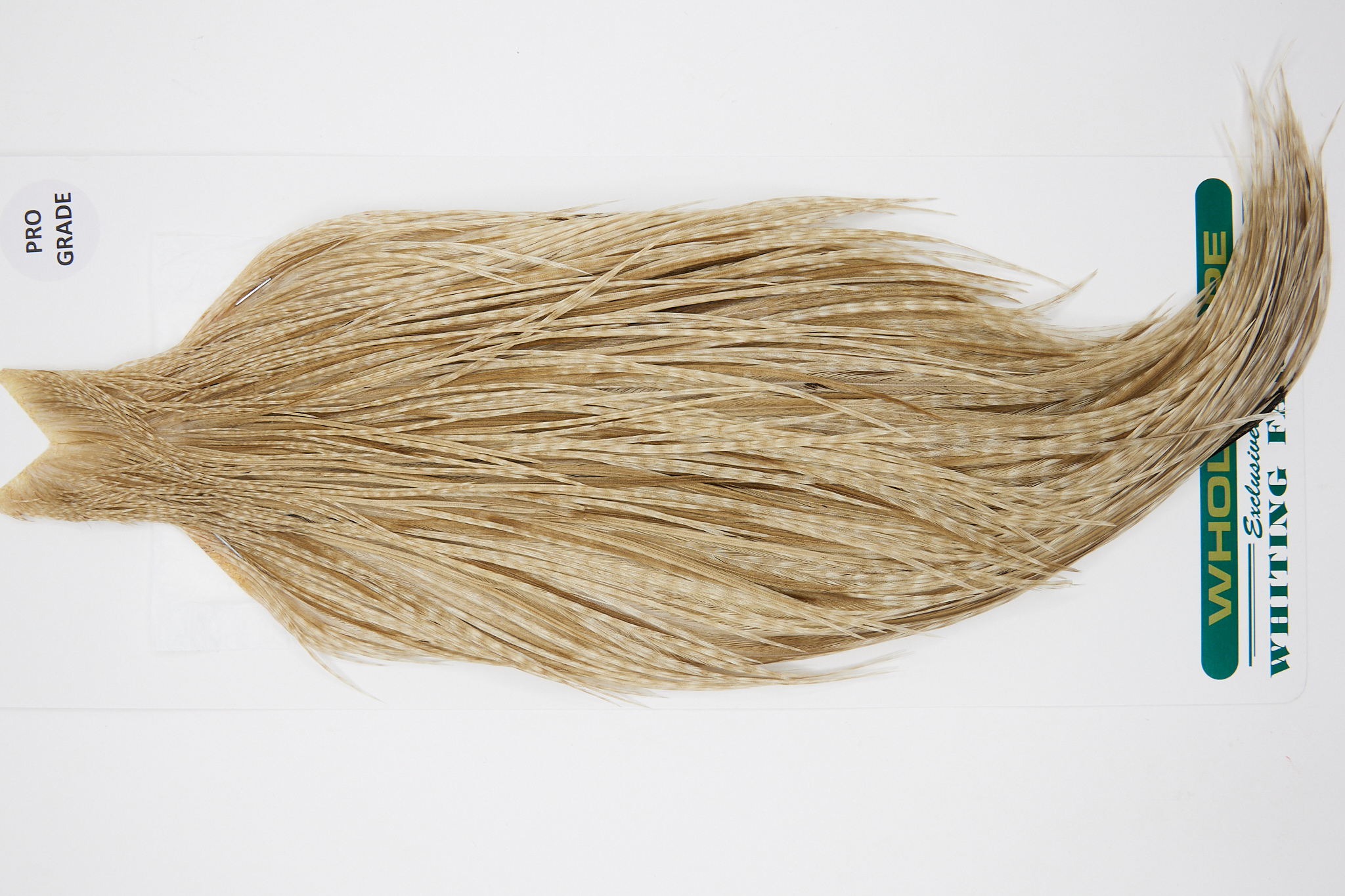 11038 is a Hebert Minor Pro Grade Rooster Saddle of Unique Variant color that ties predominately size 10-24. The image shown is an actual photo of this dry fly saddle. This is NEW UNUSED HACKLE.