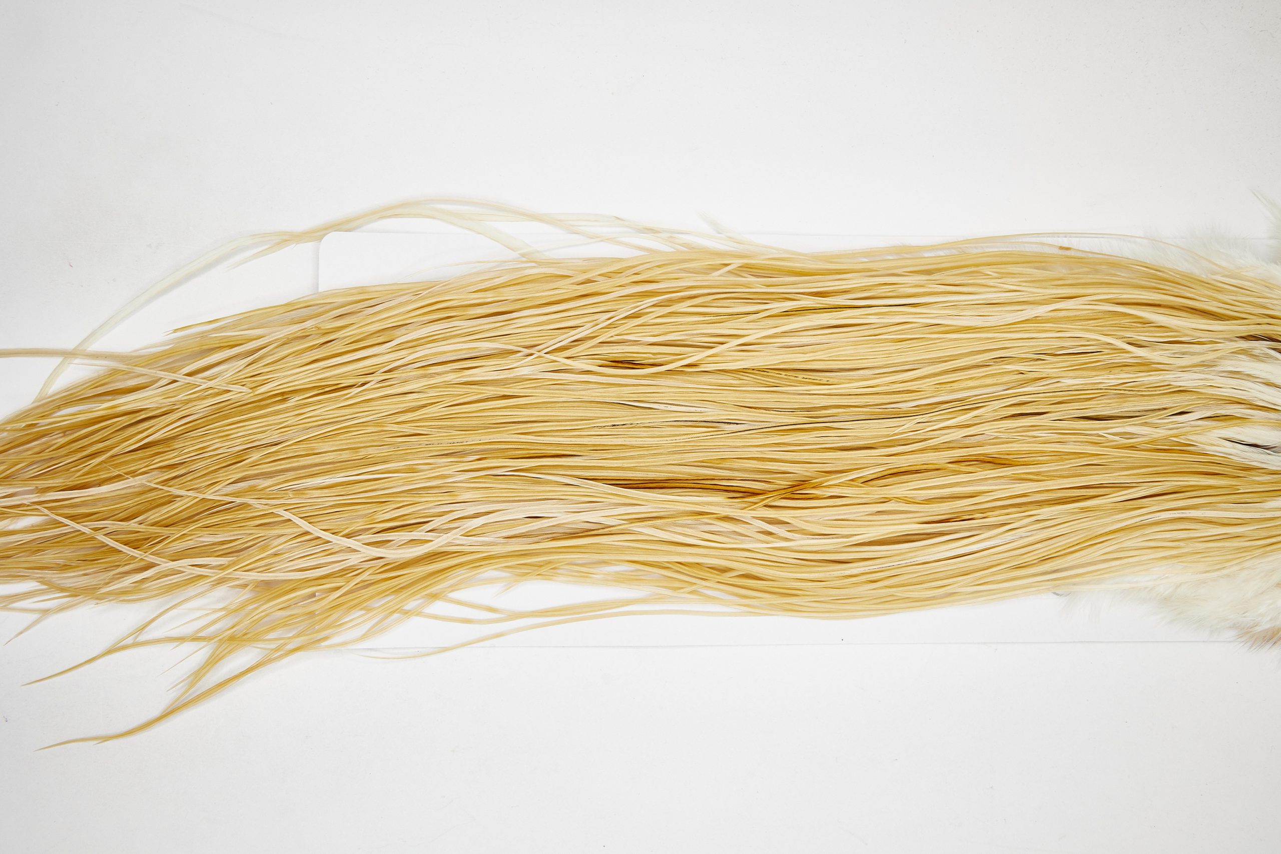 11107 is a Whiting Platinum Grade Midge Saddle of Light Ginger color that ties predominately size 18-20. The image shown is an actual photo of this wet fly saddle. This is NEW UNUSED HACKLE.