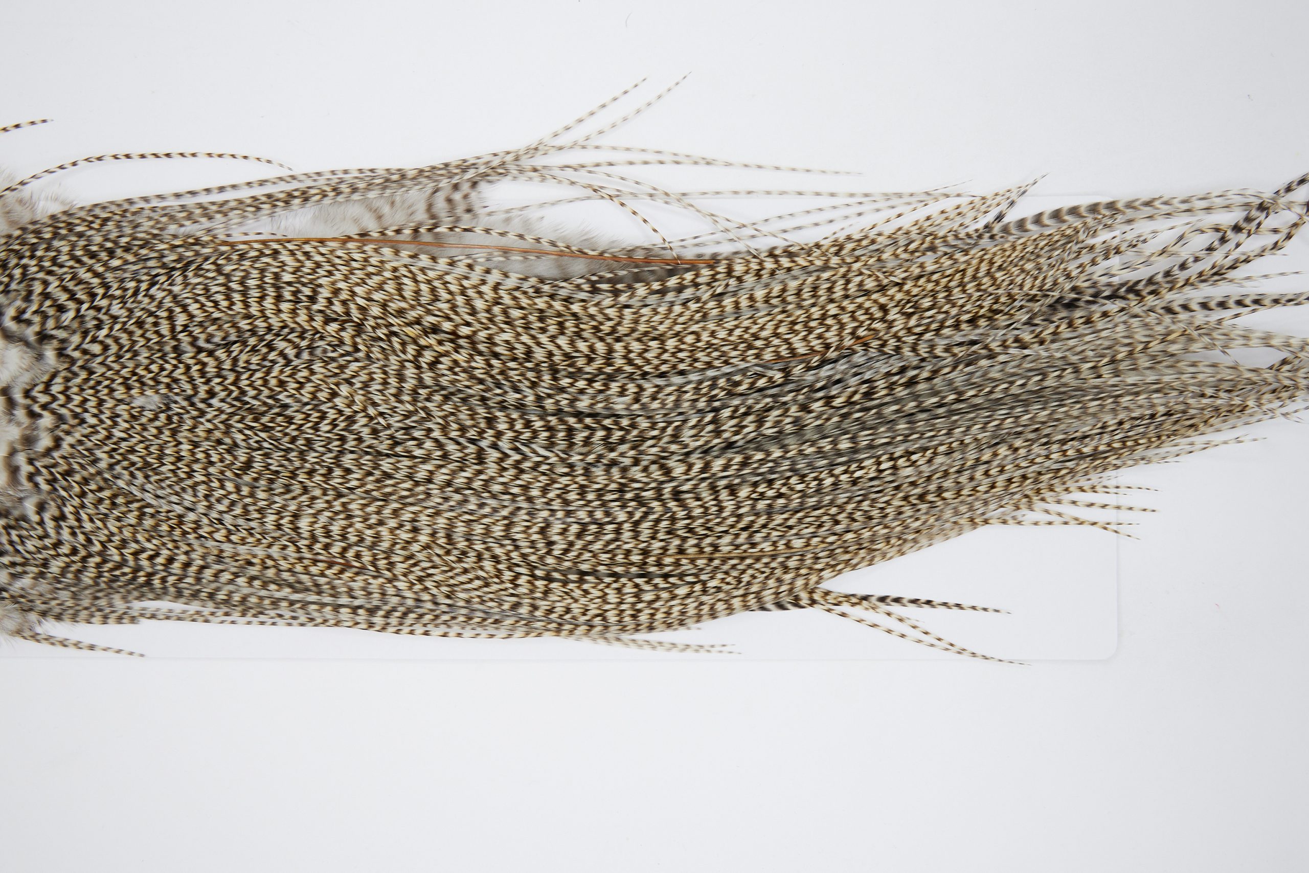 11134 is a Whiting Bronze Grade Midge Saddle of Dun Grizzly color that ties predominately size 14-20. The image shown is an actual photo of this wet fly saddle. This is NEW UNUSED HACKLE.