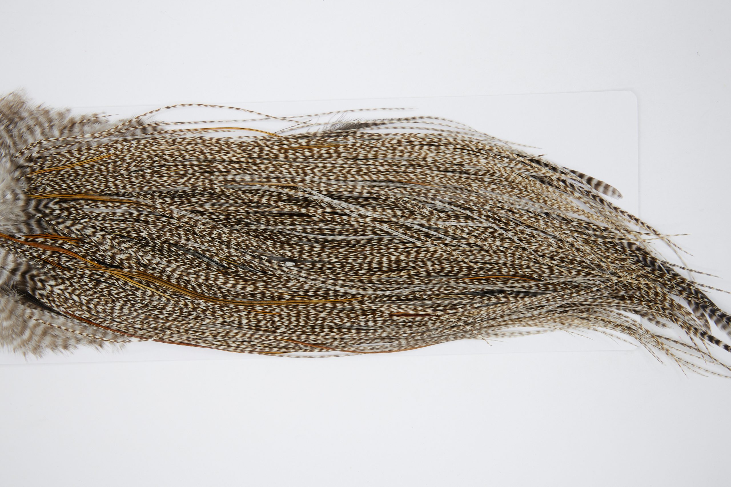 11135 is a Whiting Bronze Grade Midge Saddle of Dun Grizzly color that ties predominately size 18-20. The image shown is an actual photo of this wet fly saddle. This is NEW UNUSED HACKLE.