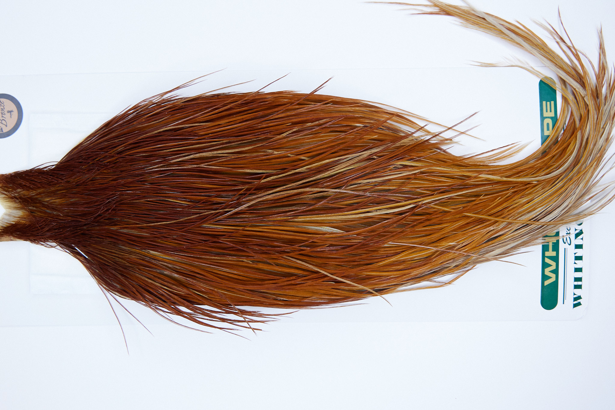 1131 is a Hebert Minor Bronze Grade Rooster Cape of Medium Brown color that ties predominately size 10-24. The image shown is an actual photo of this dry fly cape. This is NEW UNUSED HACKLE.