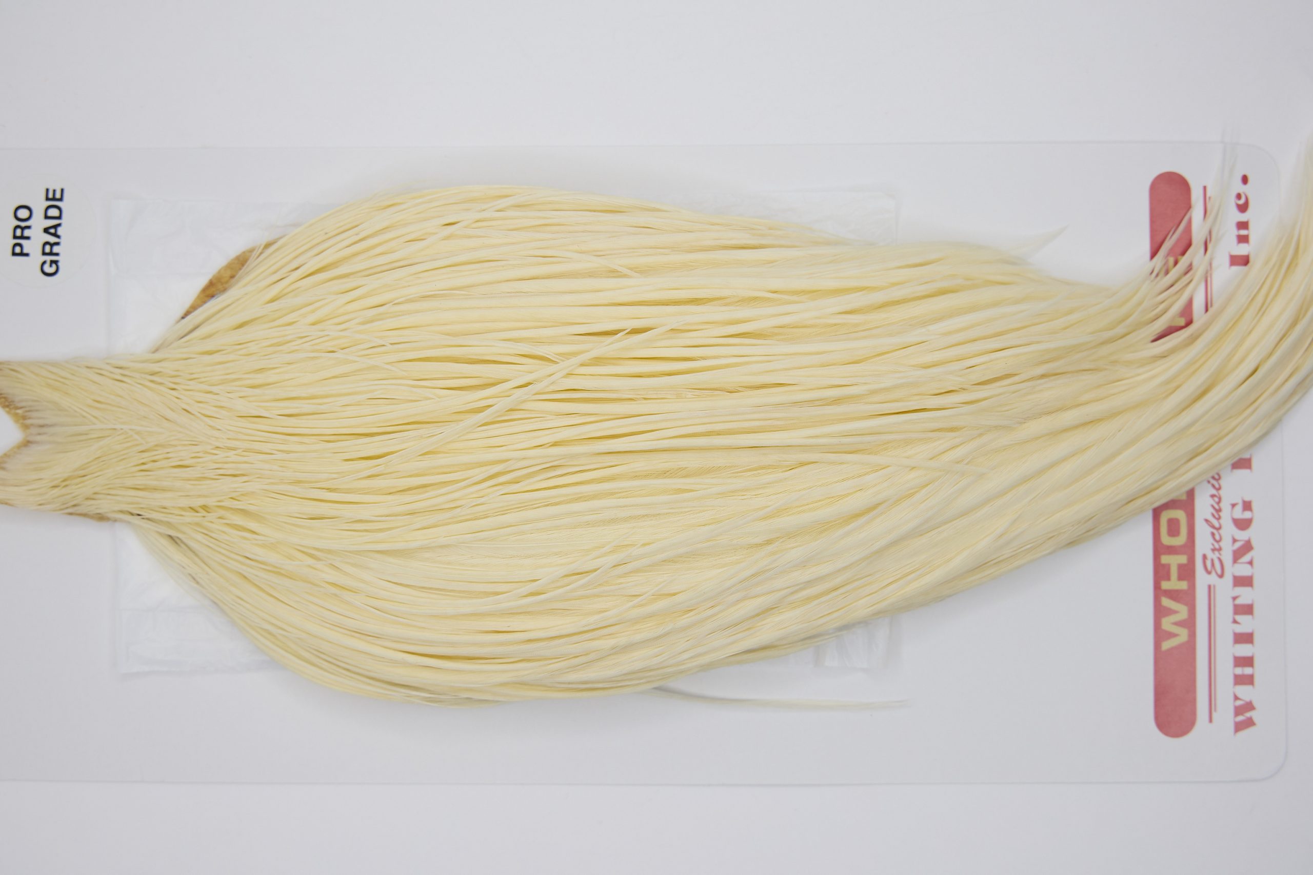11353Whiting Pro Grade Rooster Cape of White color that ties predominately size 8-22. The image shown is an actual photo of this dry fly cape. This is NEW UNUSED HACKLE.