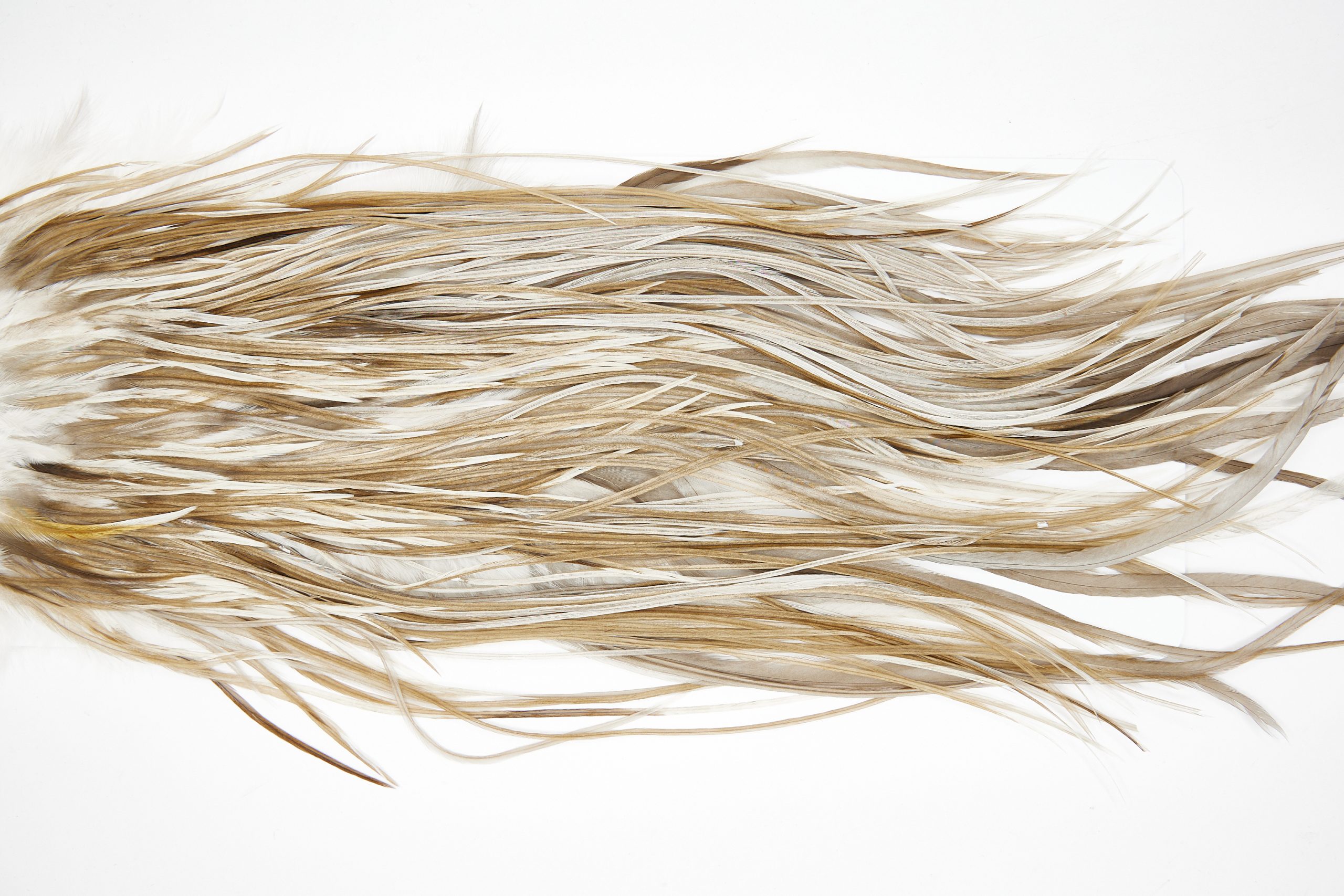 11434 is a JimsFlyCo Grade 3 Rooster Saddle of Dun Splash color that ties predominately size 14-16. The image shown is an actual photo of this dry fly saddle. This is NEW UNUSED HACKLE.