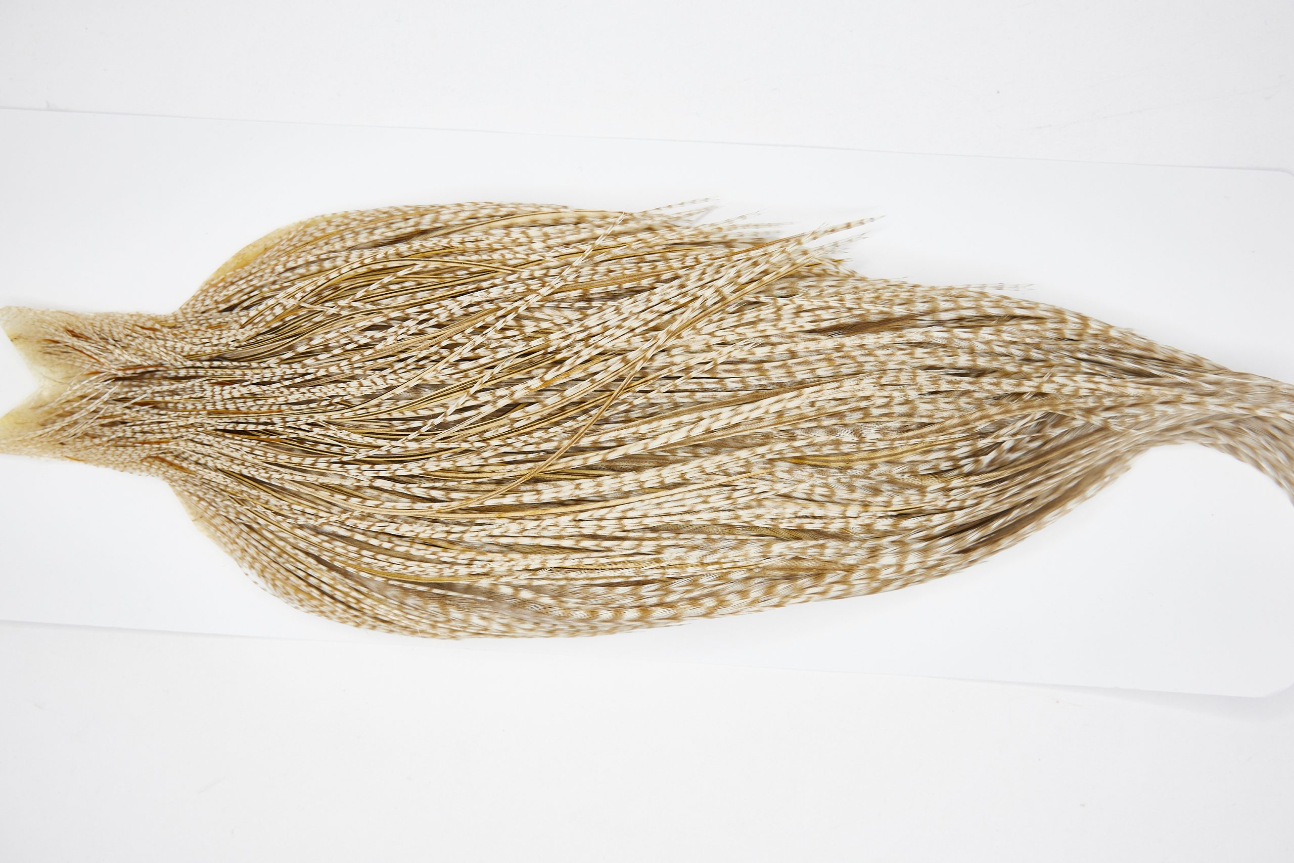 11443 is a JimsFlyCo Grade 1 Rooster Cape of Grizzly Dun Variant color that ties predominately size 10-22. The image shown is an actual photo of this dry fly cape. This is NEW UNUSED HACKLE.
