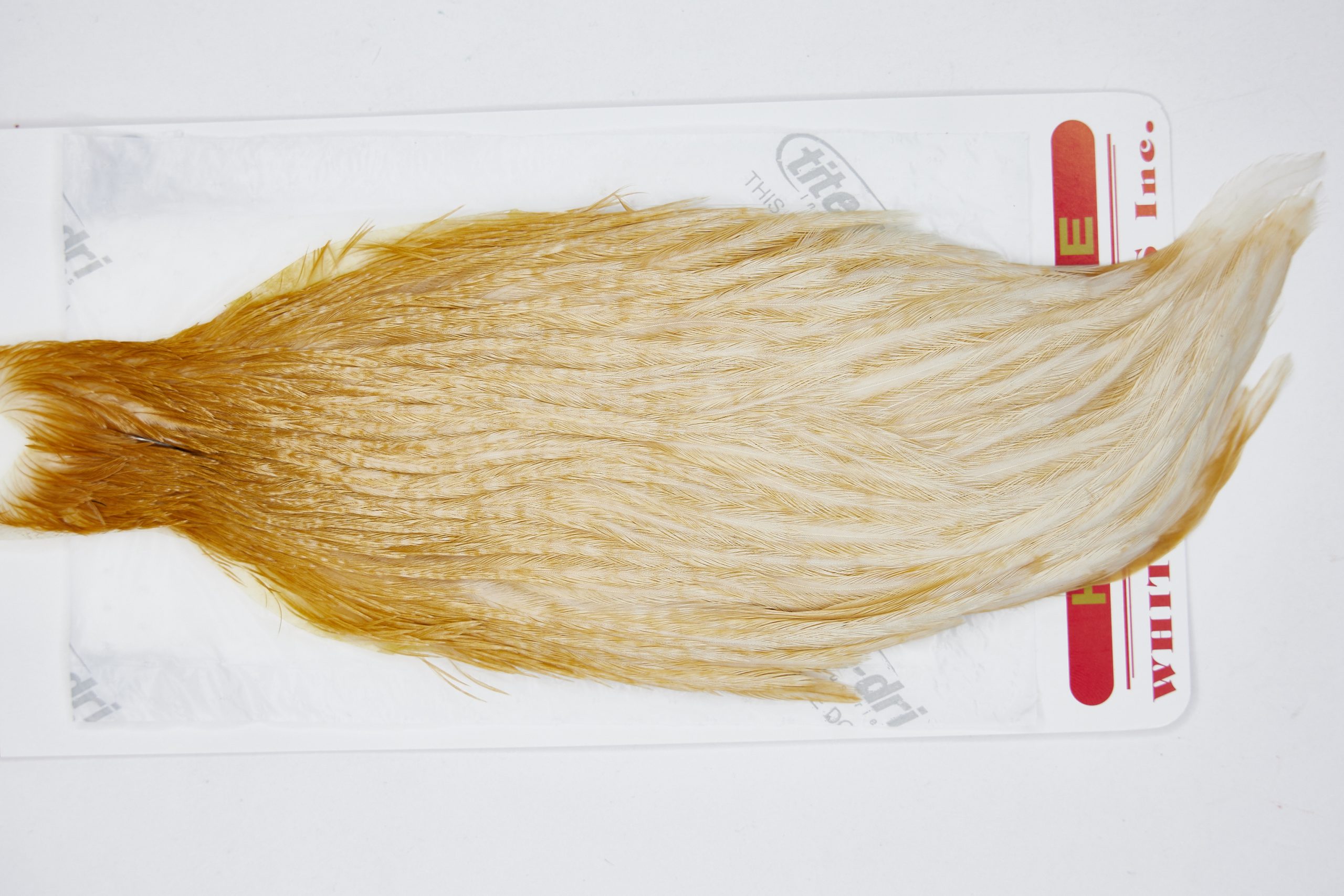 11551 is a Whiting Hen Cape of Light Ginger color. The image shown is an actual photo of this cape. This is NEW UNUSED HACKLE.