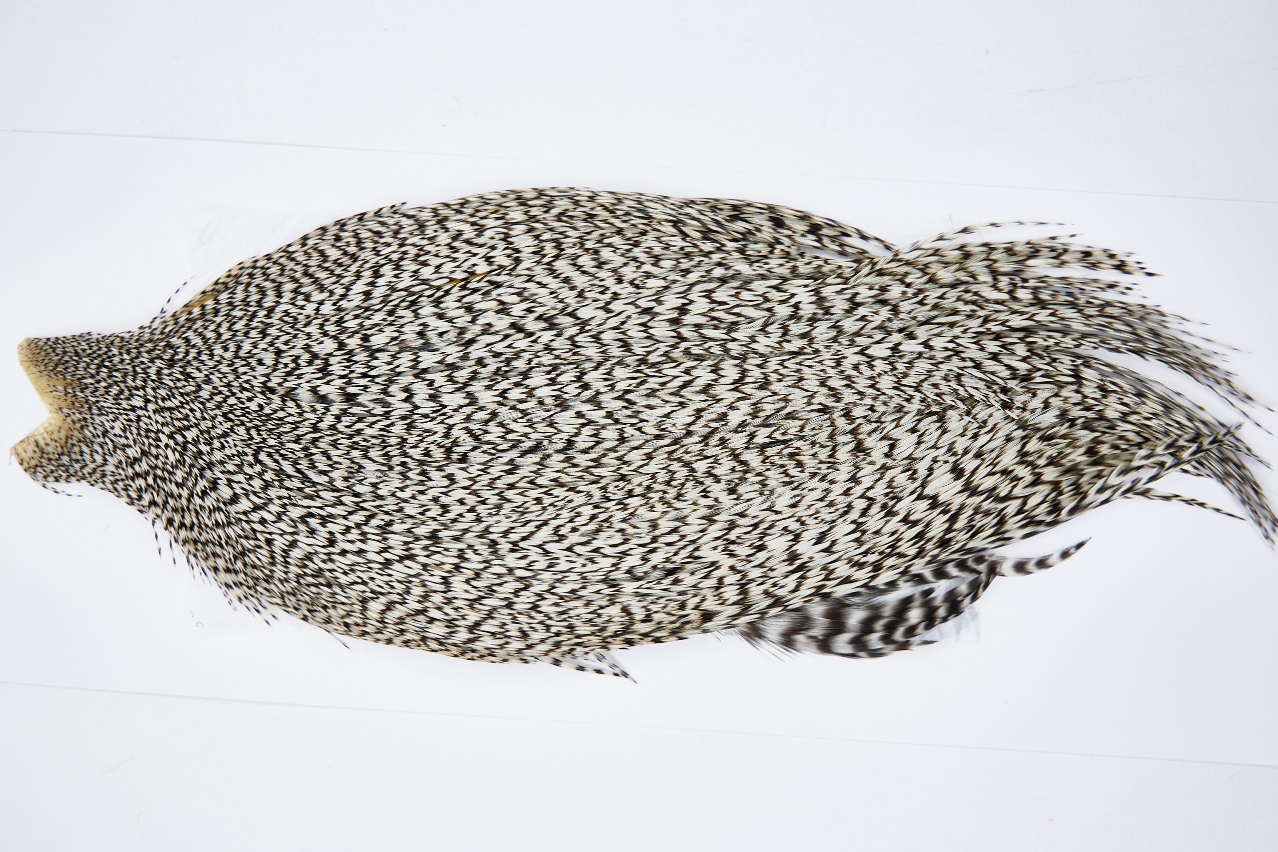 11630 is a Beaverkill Rooster Cape of Grizzly Variant color that ties predominately size 8-22. The image shown is an actual photo of this dry fly cape. This is NEW UNUSED HACKLE.