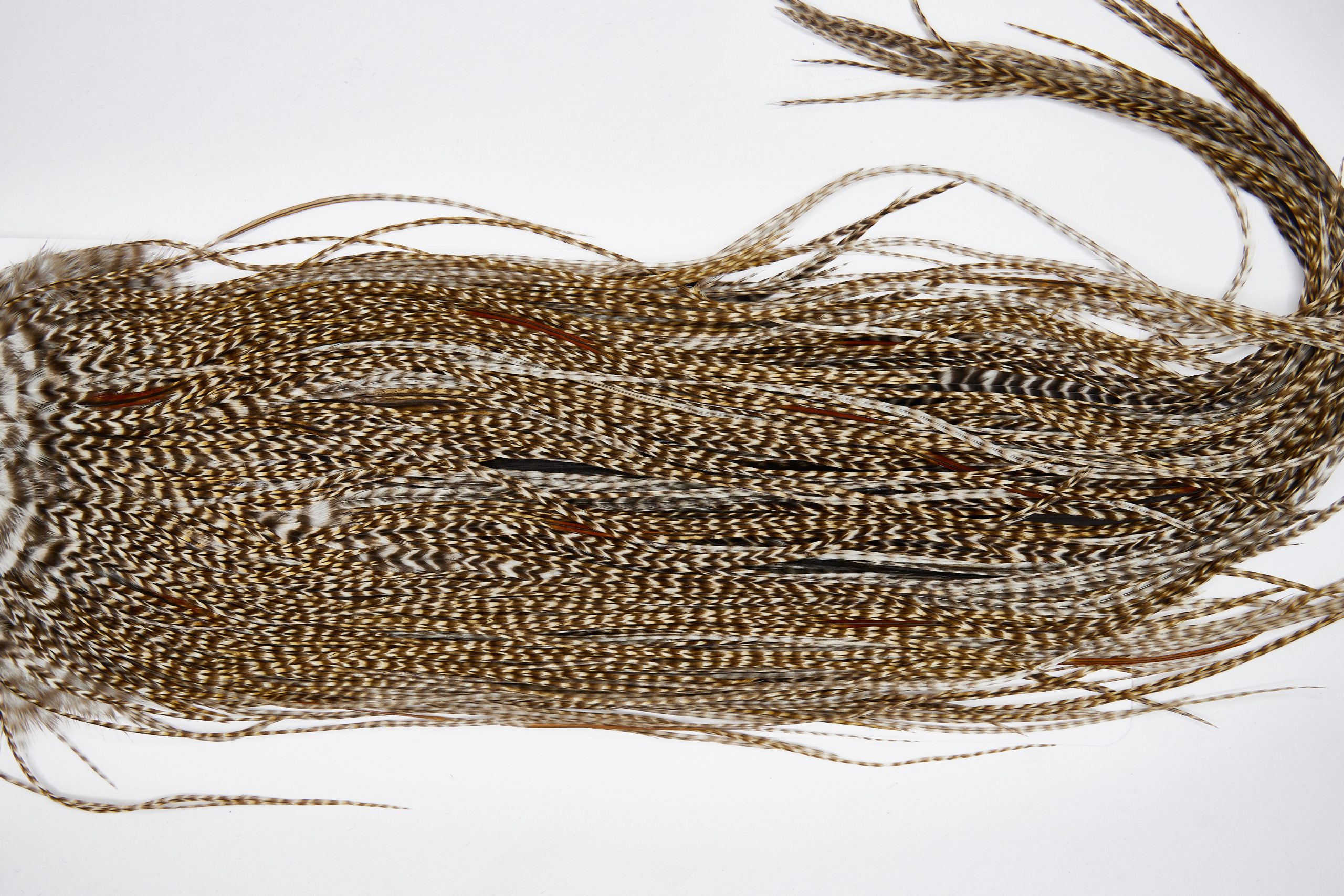 11648 is a Beaverkill Rooster Saddle of Dun Grizzly color that ties predominately size 14-16. The image shown is an actual photo of this dry fly saddle. This is NEW UNUSED HACKLE.