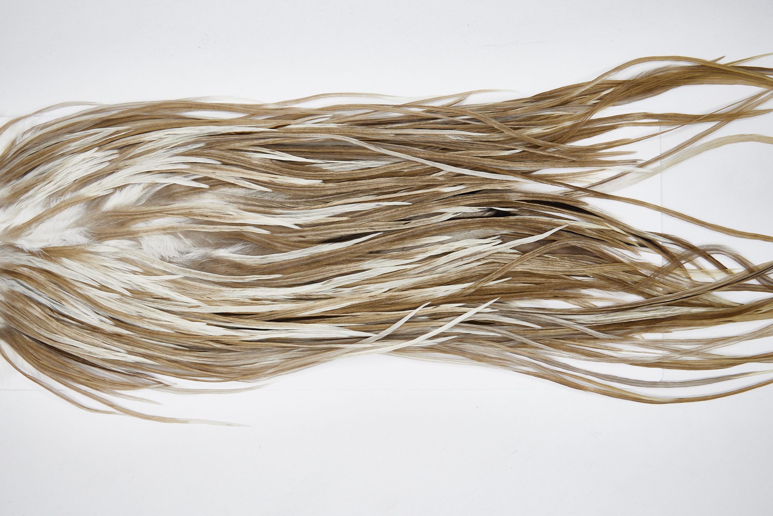 11654 is a Beaverkill Rooster Saddle of Dun Splash color that ties predominately size 10-12. The image shown is an actual photo of this dry fly saddle. This is NEW UNUSED HACKLE.