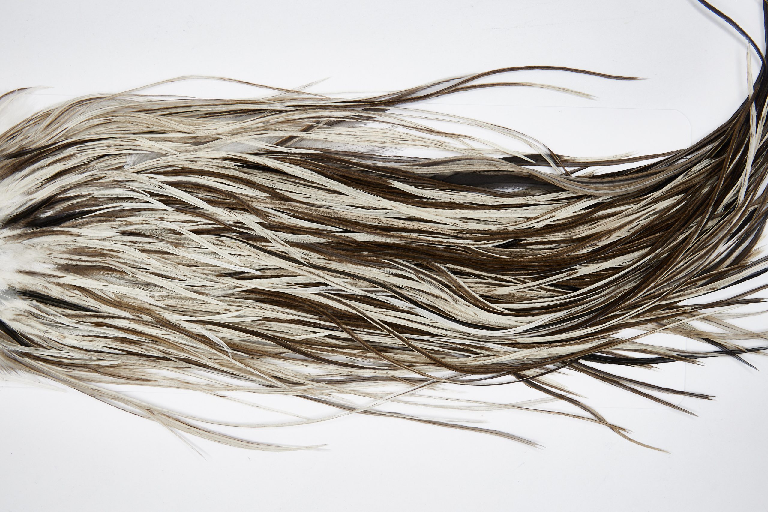 11658 is a Beaverkill Rooster Saddle of Dun Splash color that ties predominately size 12-16. The image shown is an actual photo of this dry fly saddle. This is NEW UNUSED HACKLE.