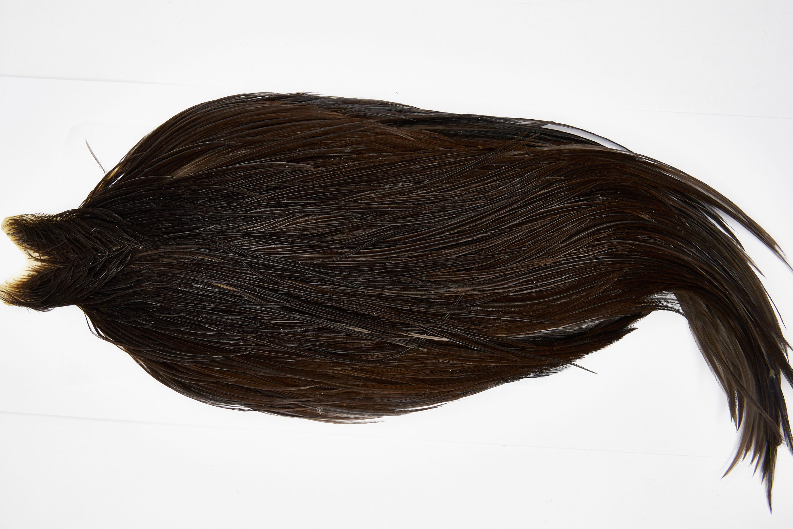 11673 is a JimsFlyCo Grade 1 Rooster Cape of Dark Dun color that ties predominately size 8-22. The image shown is an actual photo of this dry fly cape. This is NEW UNUSED HACKLE.